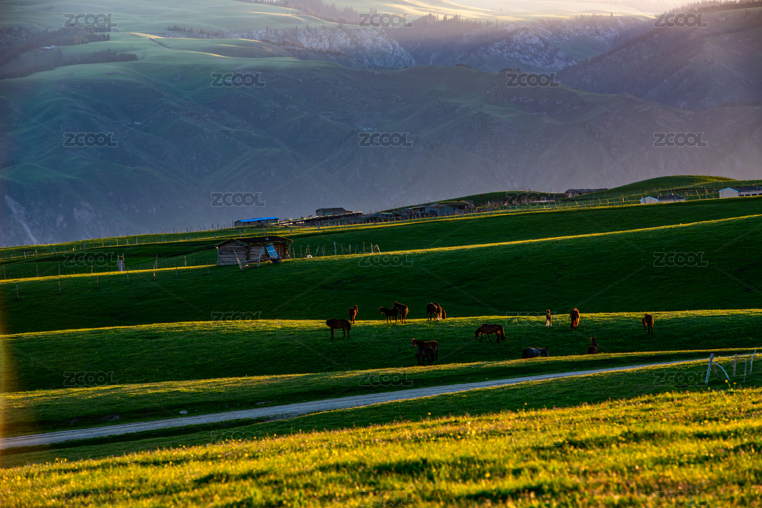亚洲,中国,新疆,伊犁,大草原,畜牧业,动物,环境保护,山,远处