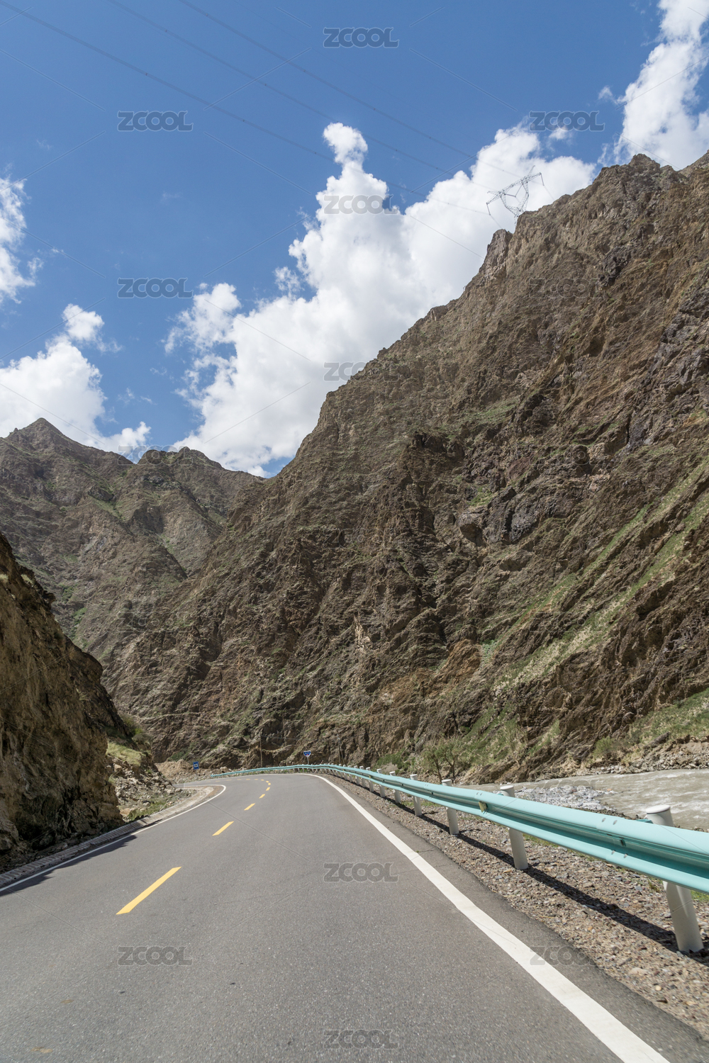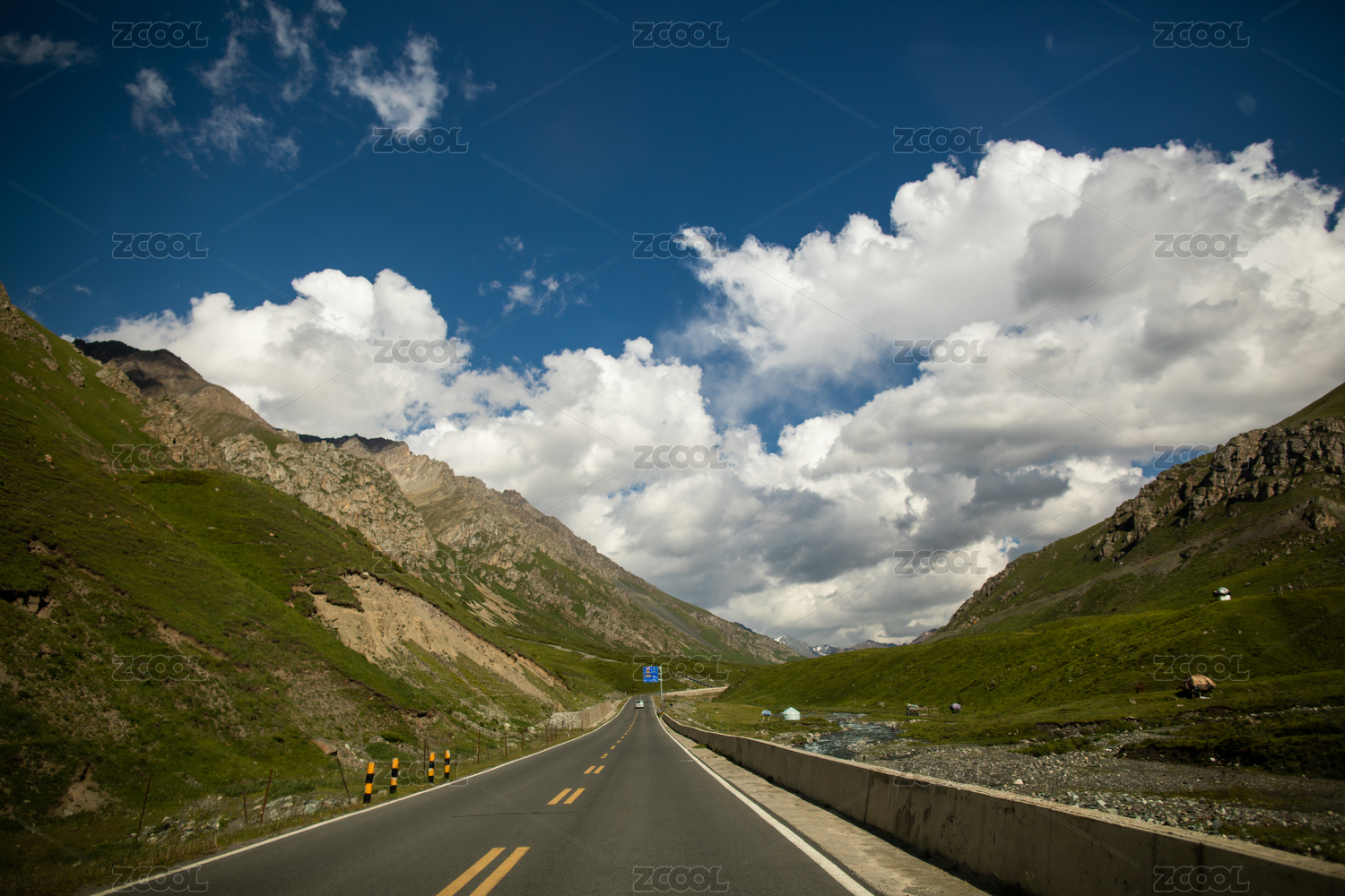 夏季晴天中国新疆独子山G217国道戈壁滩山地公路