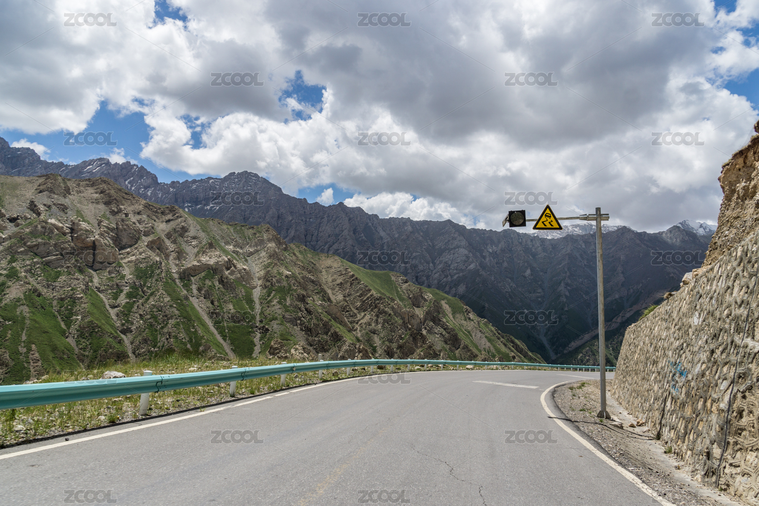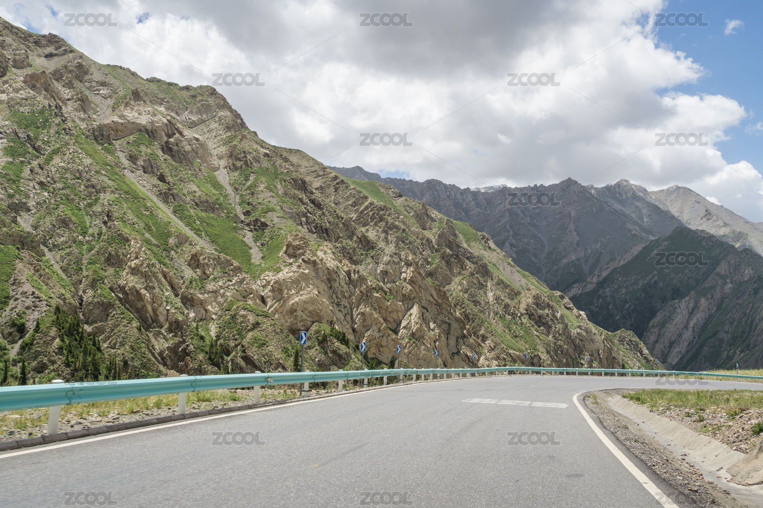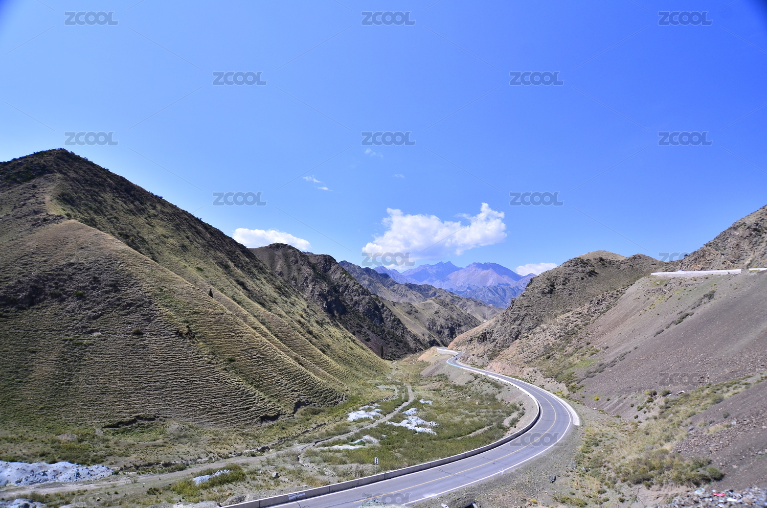 夏季晴天中国新疆G217独库公路戈壁山地弯道