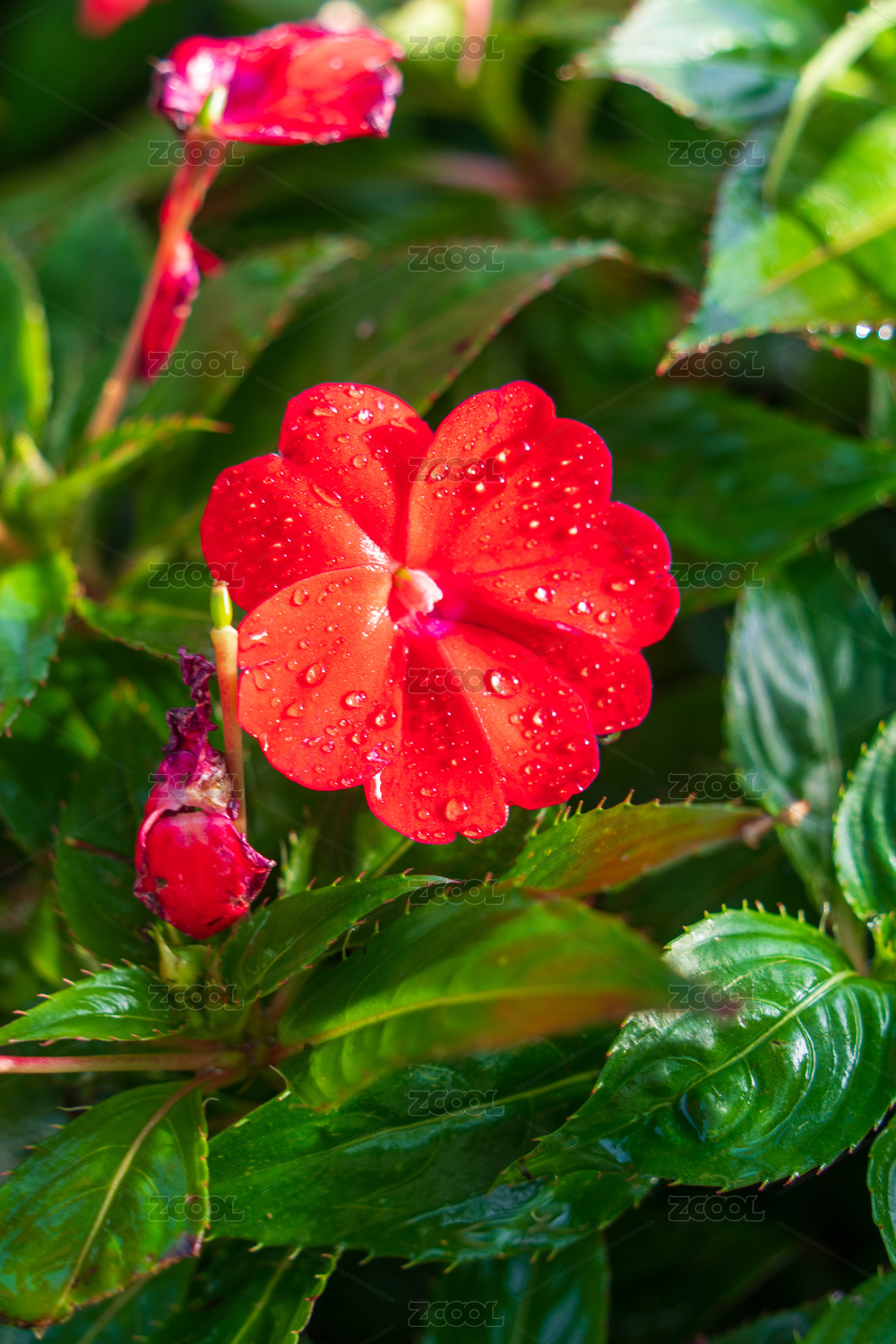 多色凤仙花盛开在花丛