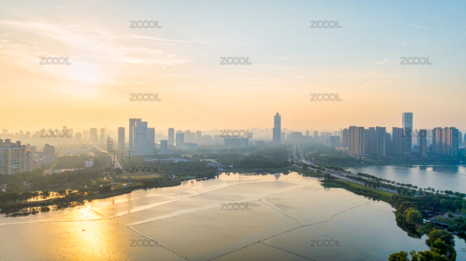 湖北武汉金银湖欧亚广场航天三江晚霞风光