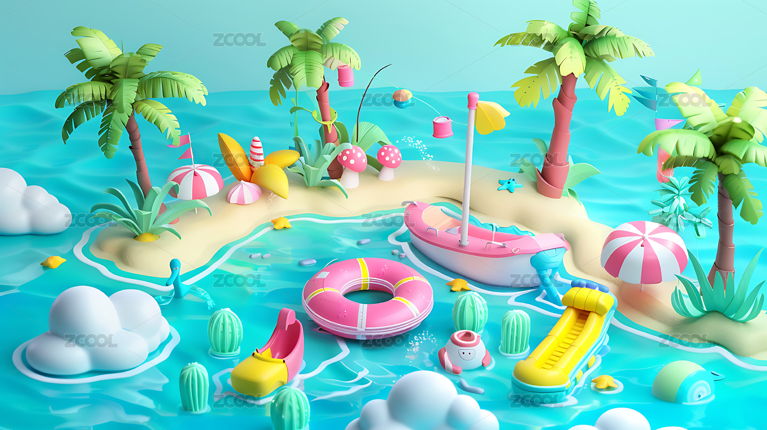 3d夏日清凉沙滩海岛背景