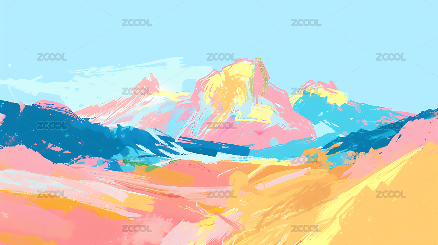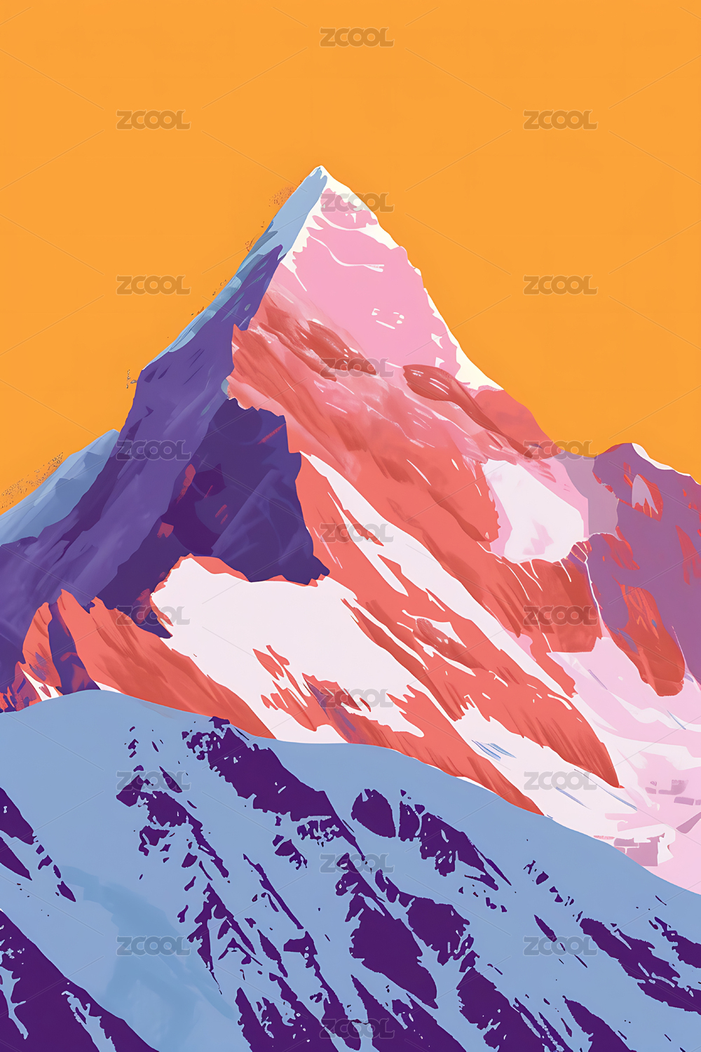 高山,自然,山,插画,水彩,水粉,山脉,雪山,油画,风景