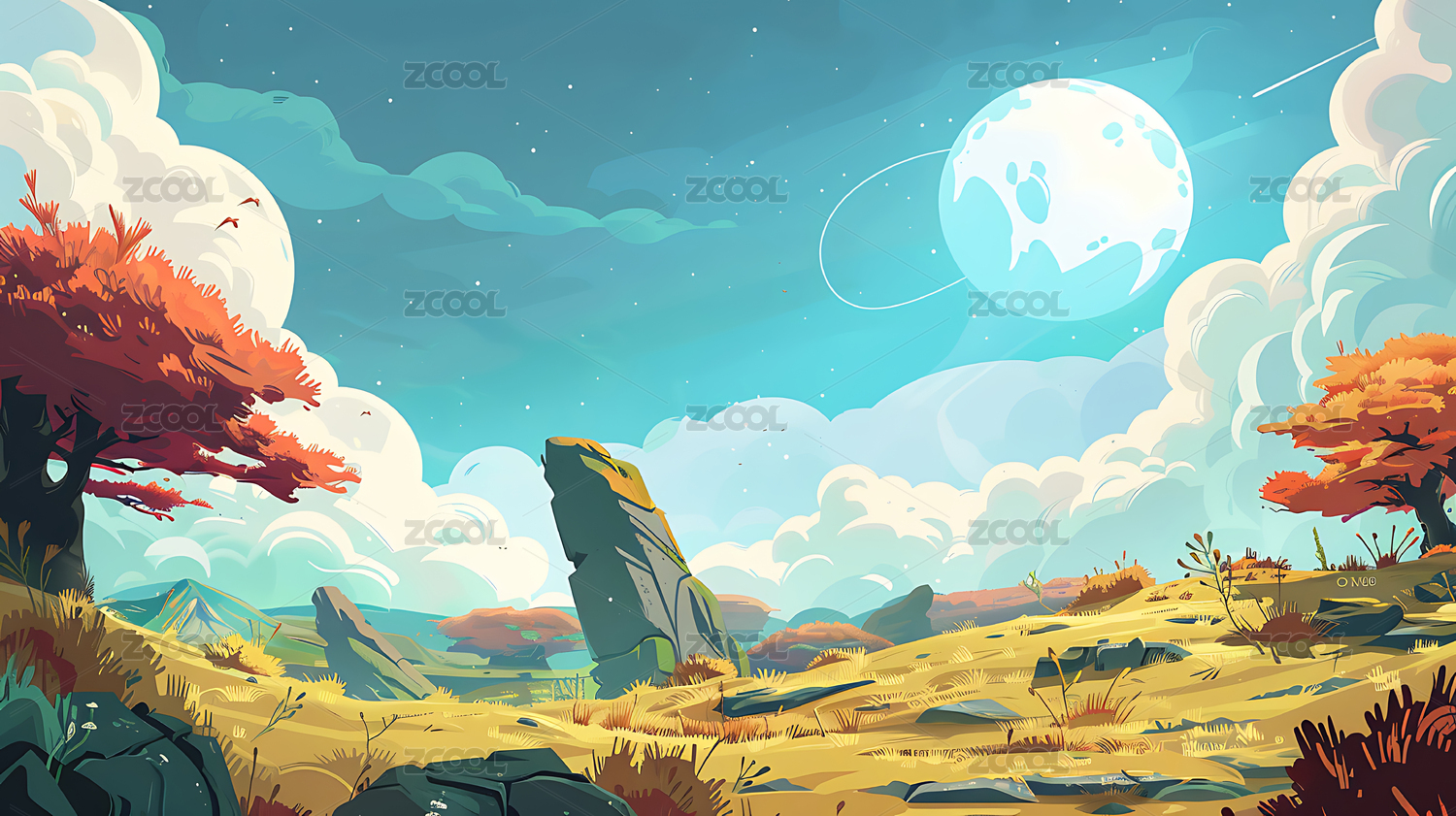 2d卡通游戏背景插画