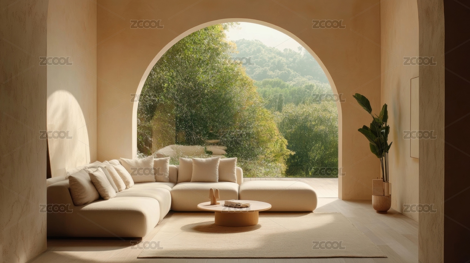 现代简约室内设计,拱形窗景