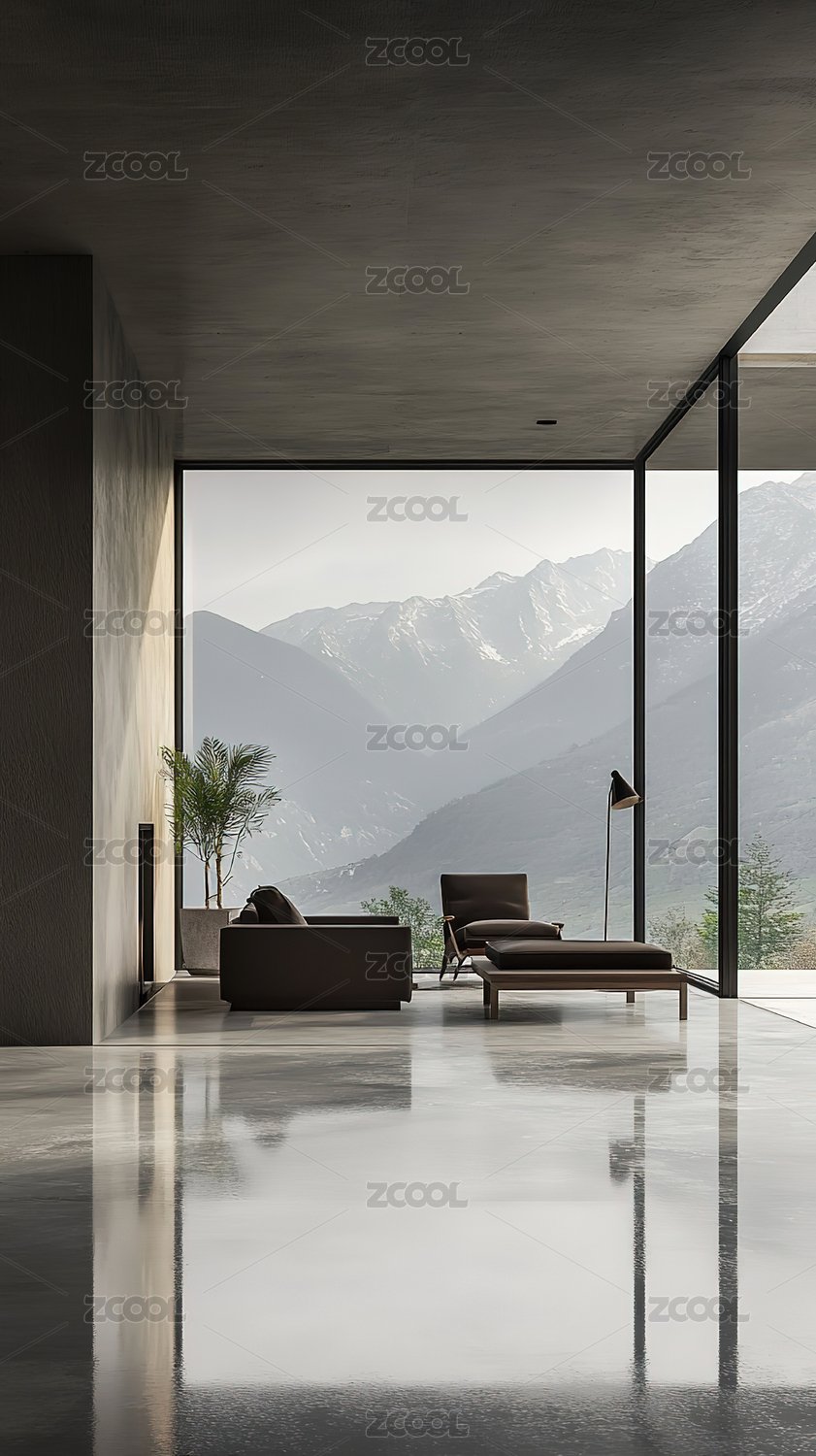 山景下的米色客厅