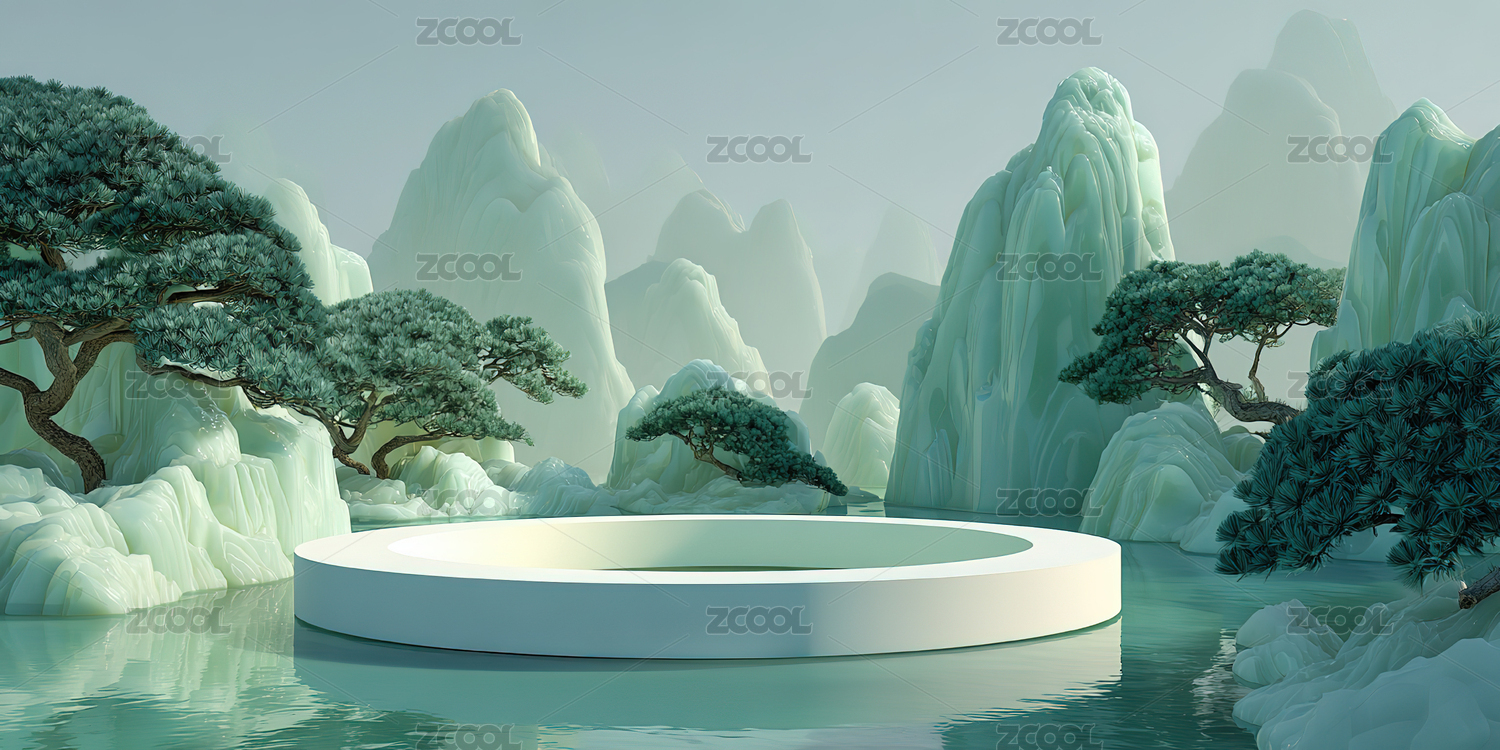 松树,装饰,国风,植物,电商,底座,展台,展览,岩石,雾