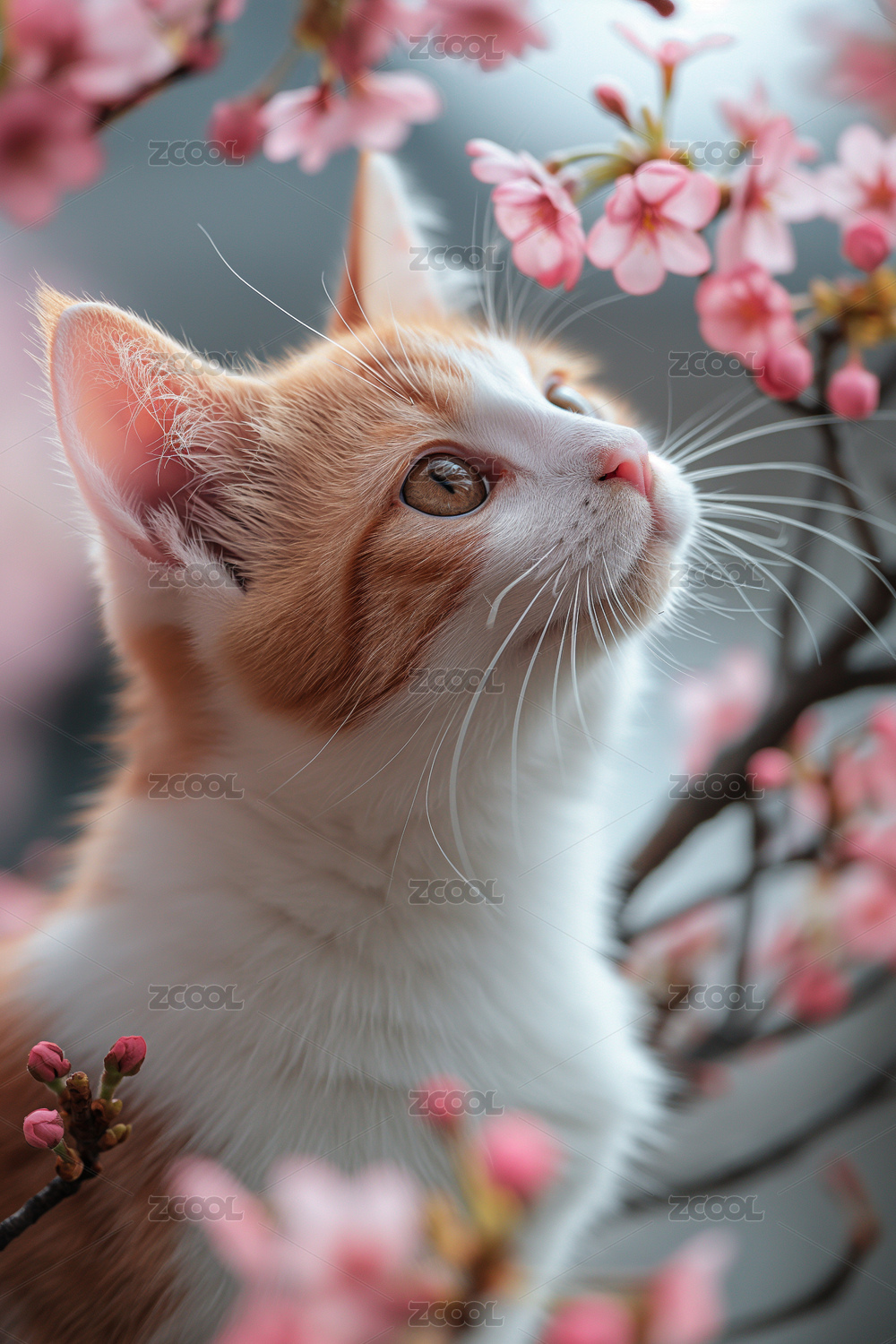 猫咪,粉色,花朵,温馨,背景,柔和,春天,可爱,宠物,自然