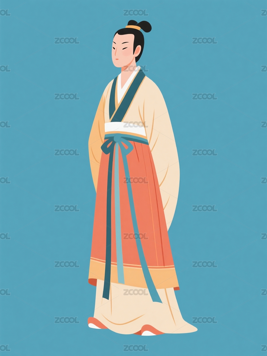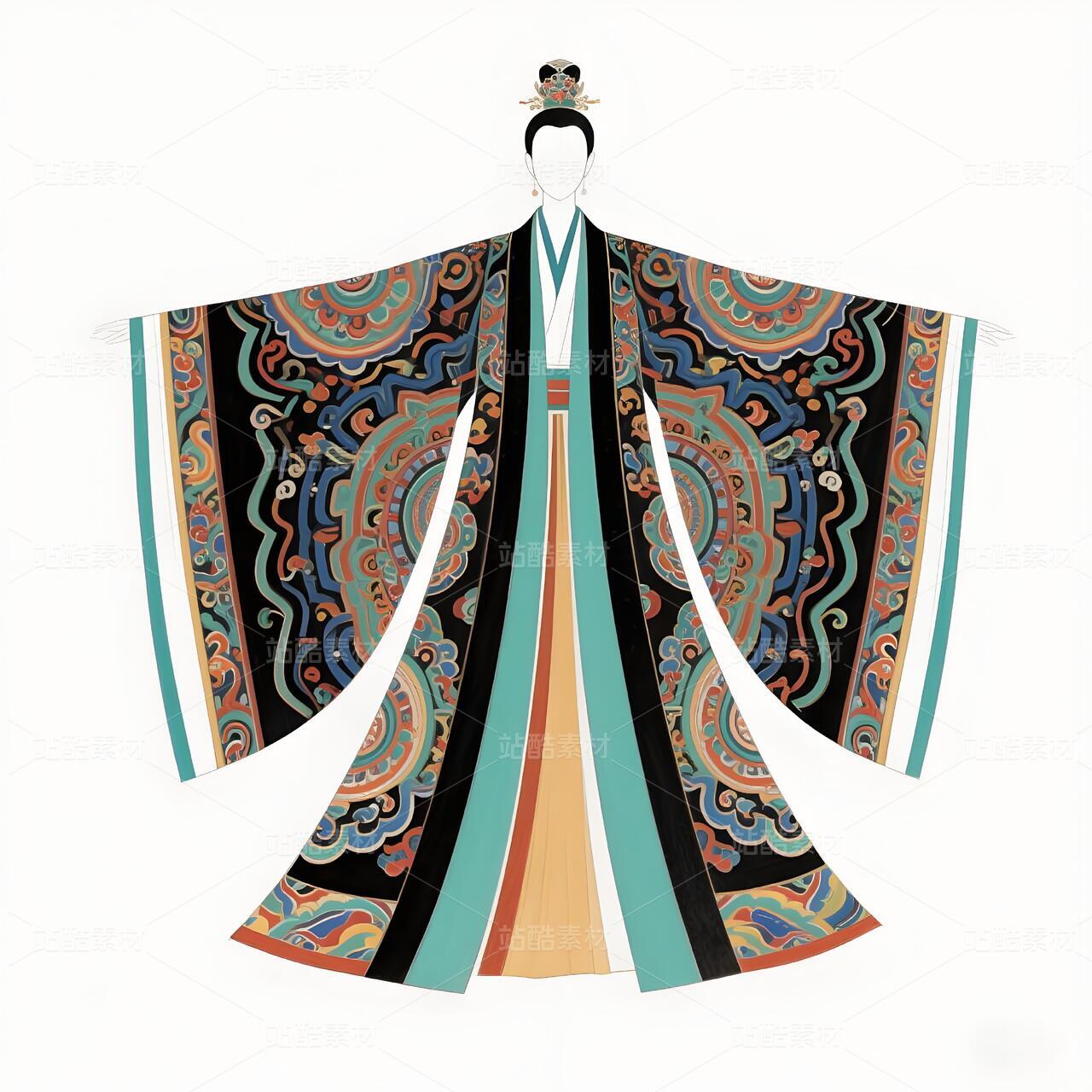 精美藻井纹样的高定汉服礼服正面设计手稿图