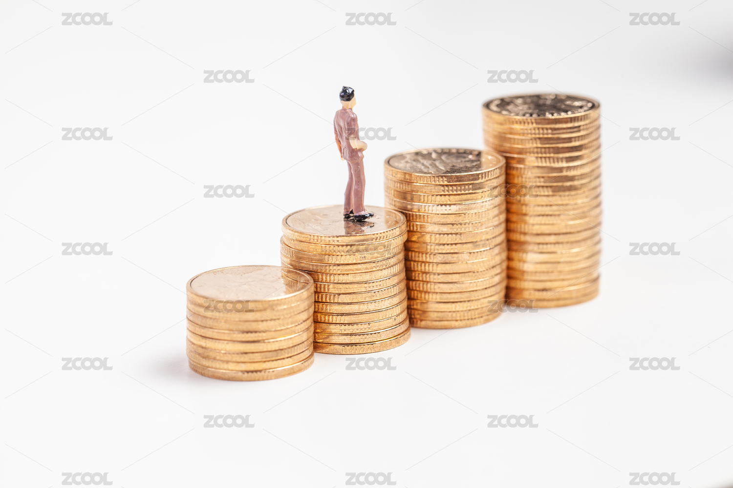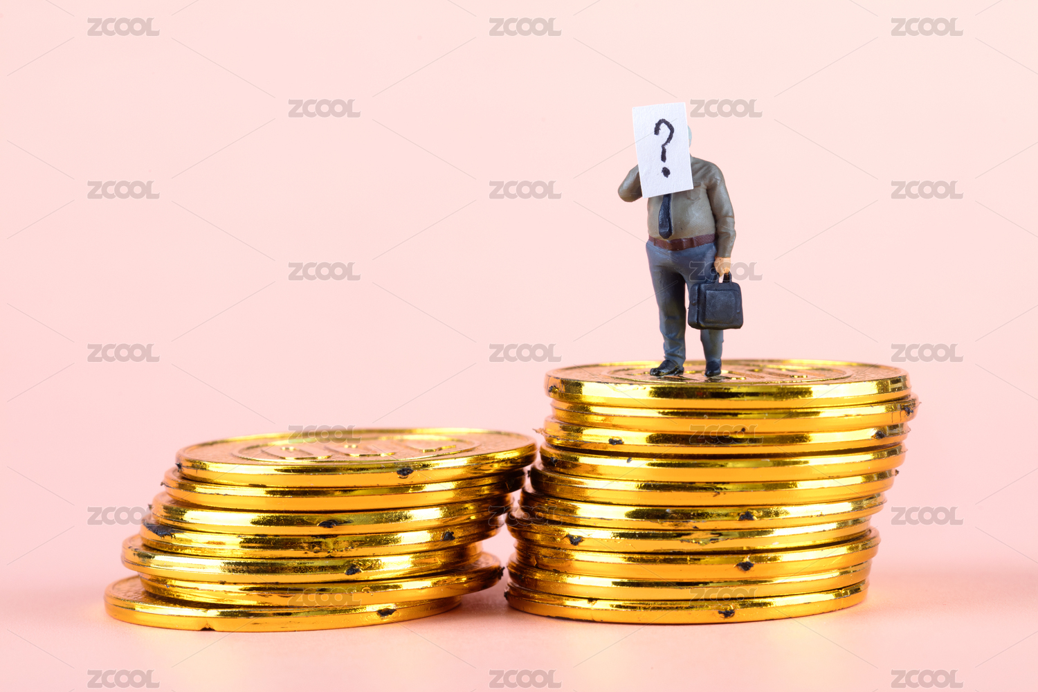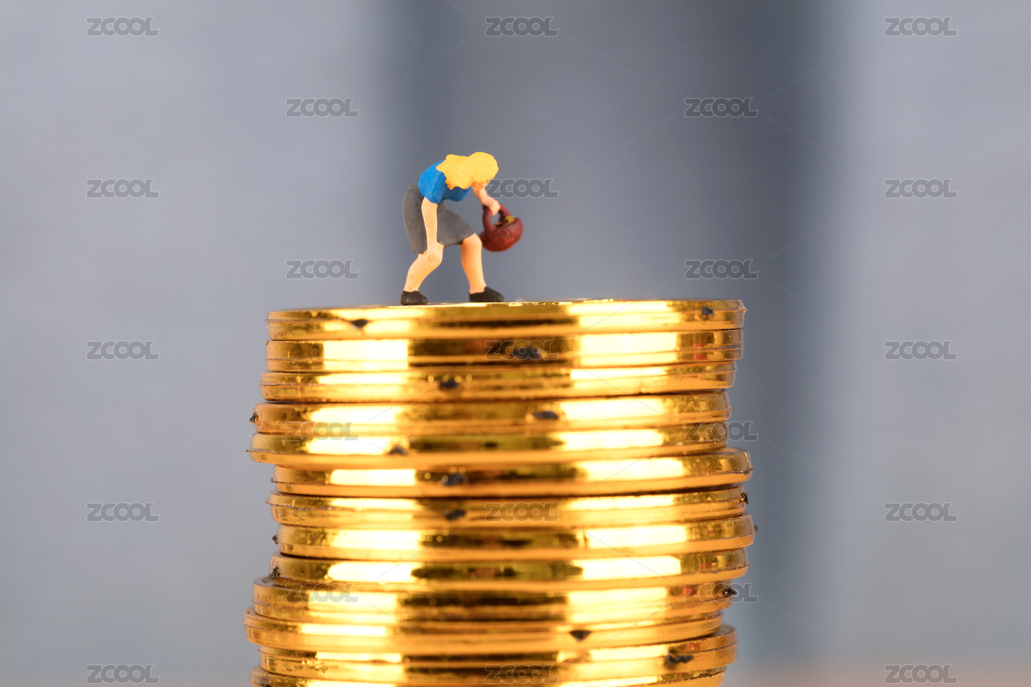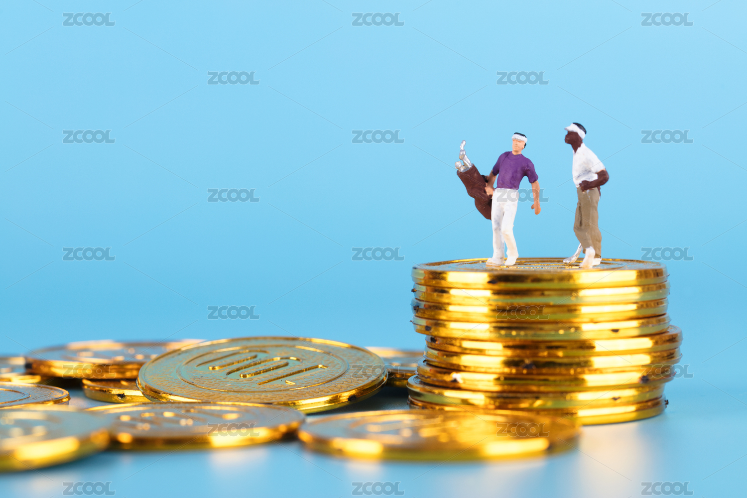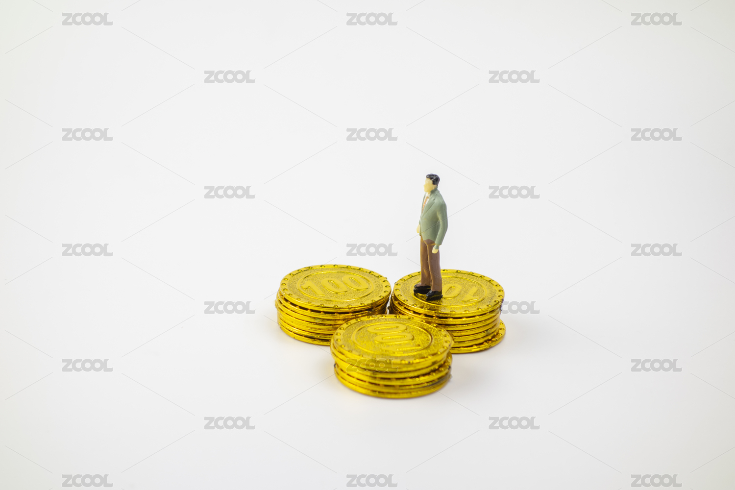 站在硬币堆里的人偶模型
