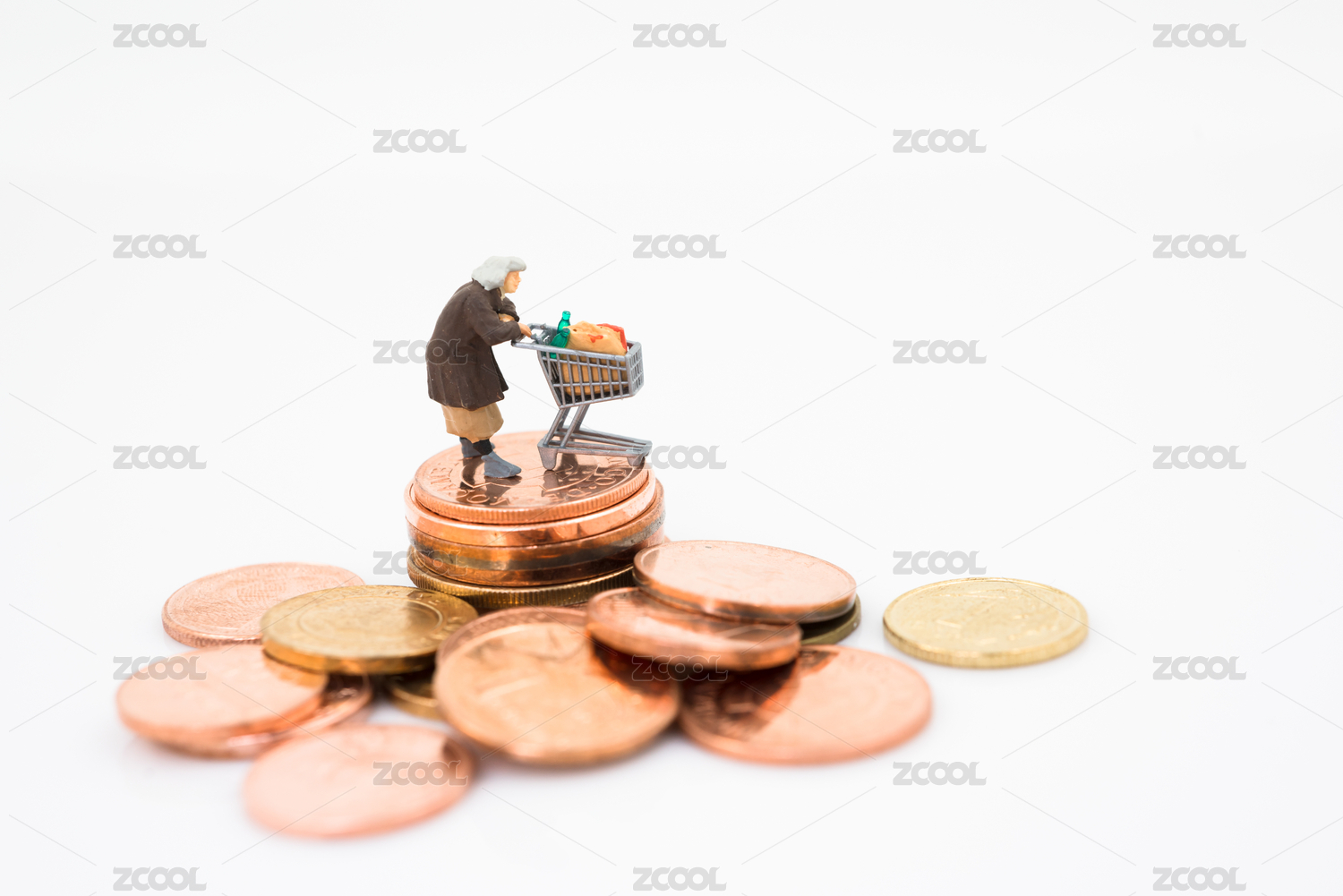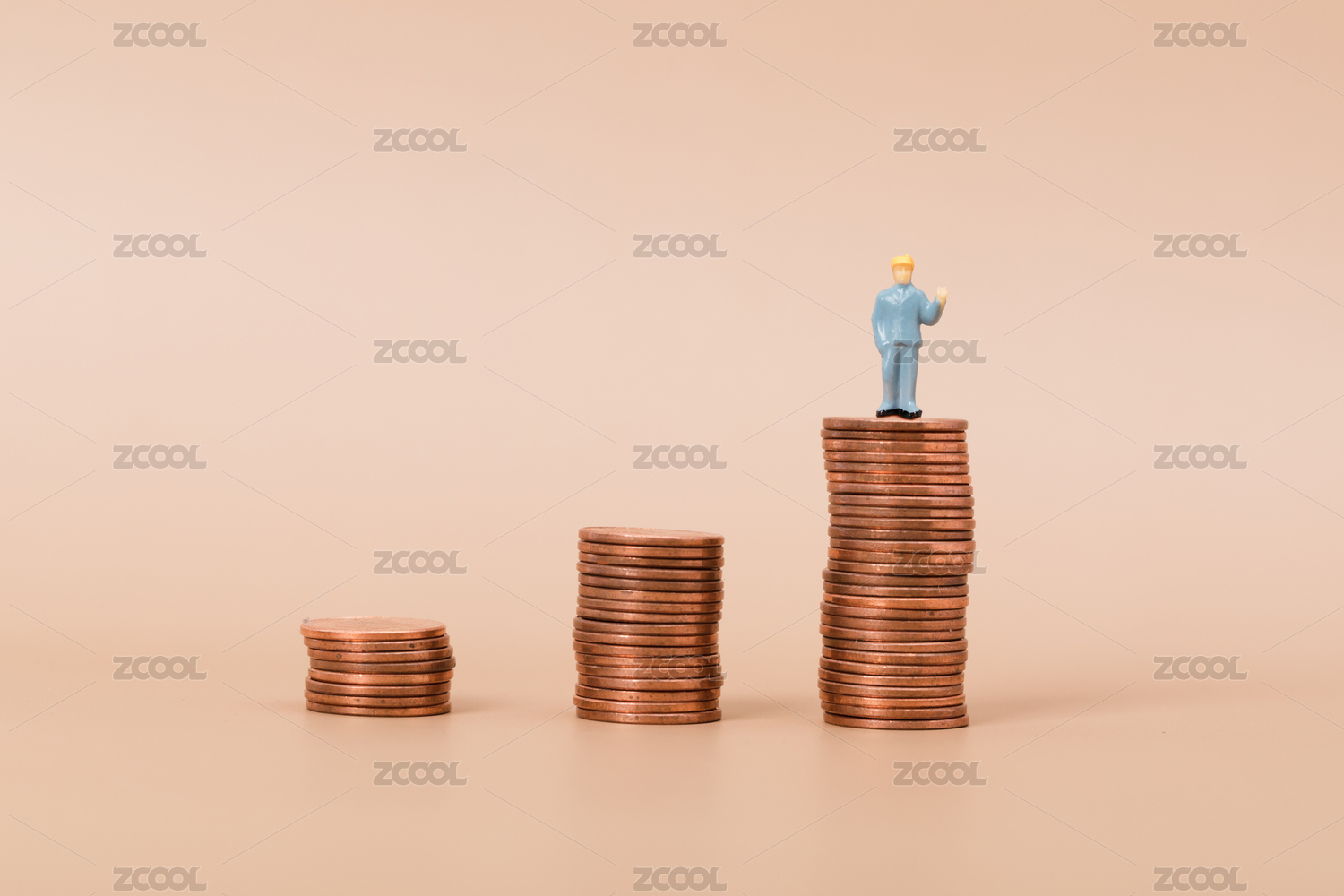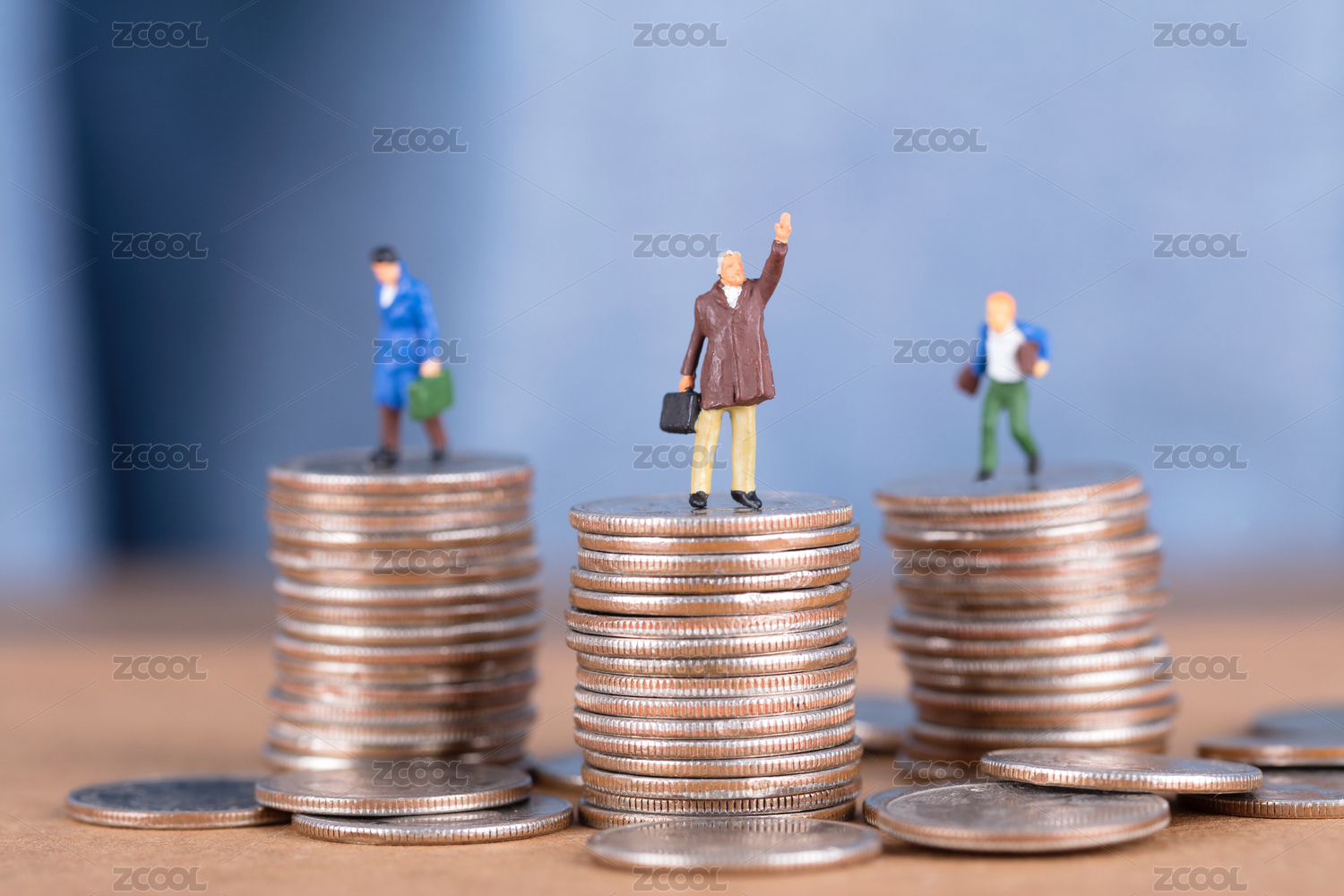 站在硬币上的微缩人偶