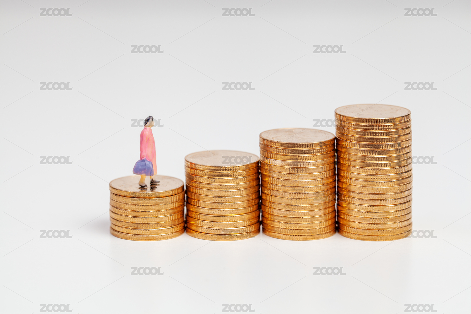 不同数量的硬币和上面的人物模型概念