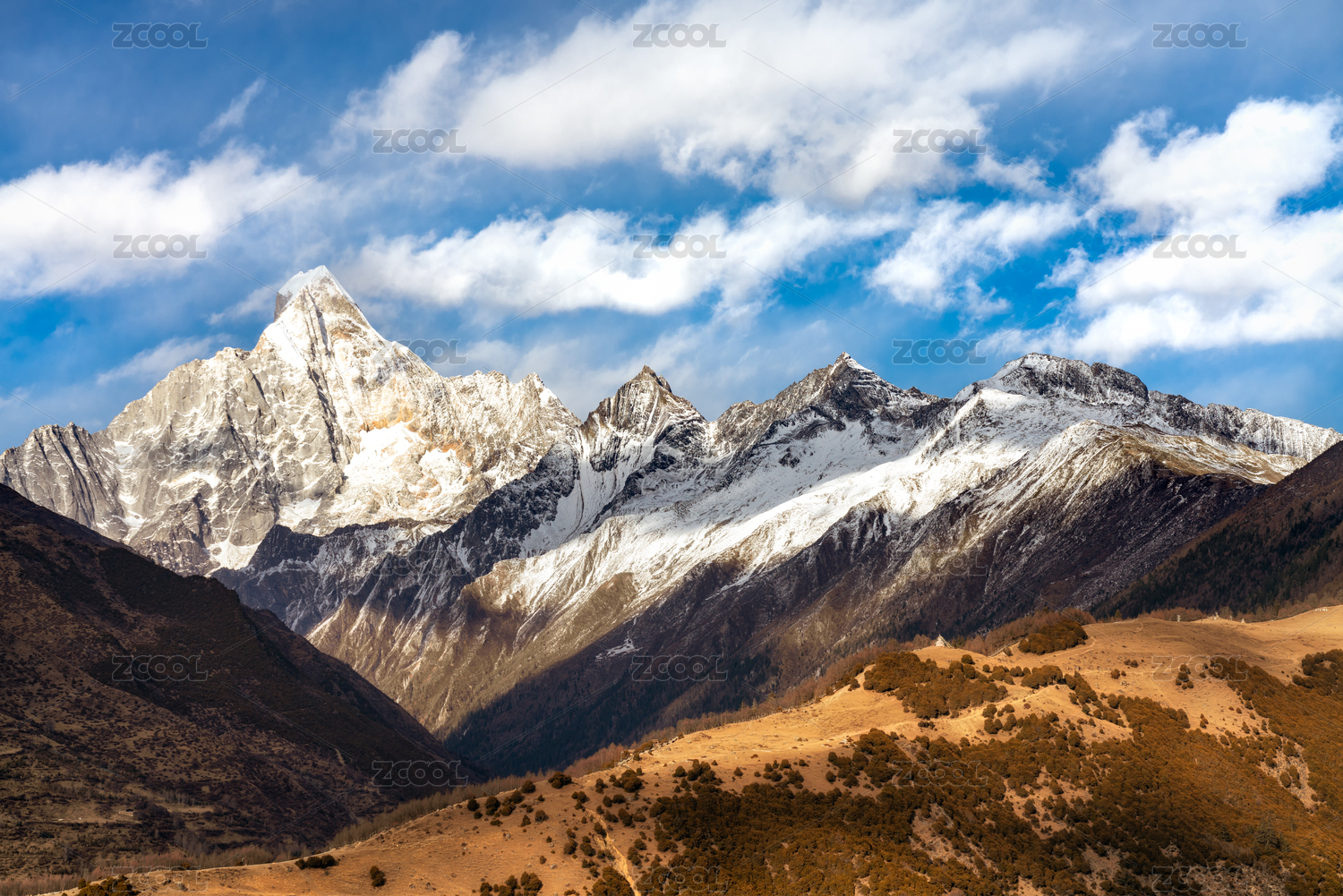川西稻城亚丁神山之一夏诺多吉在高山秋景