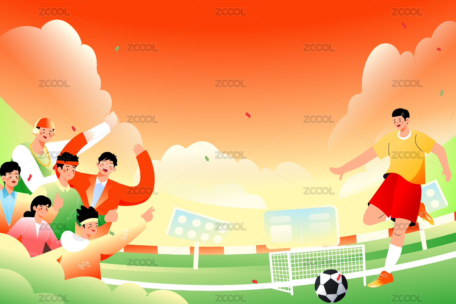 世界杯比赛看球赛加油专业体育运动训练插画