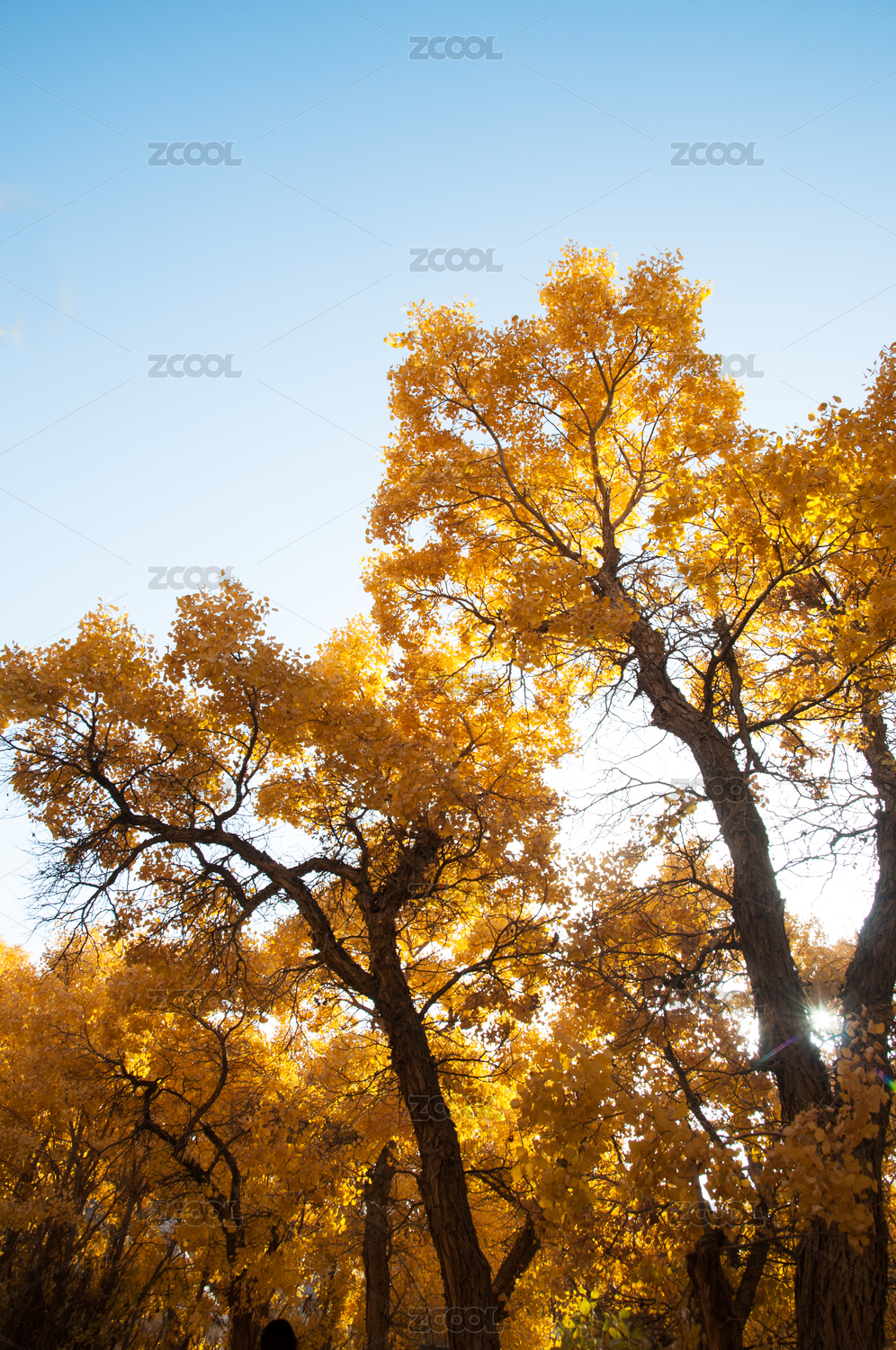 秋天蓝天下金色银杏树