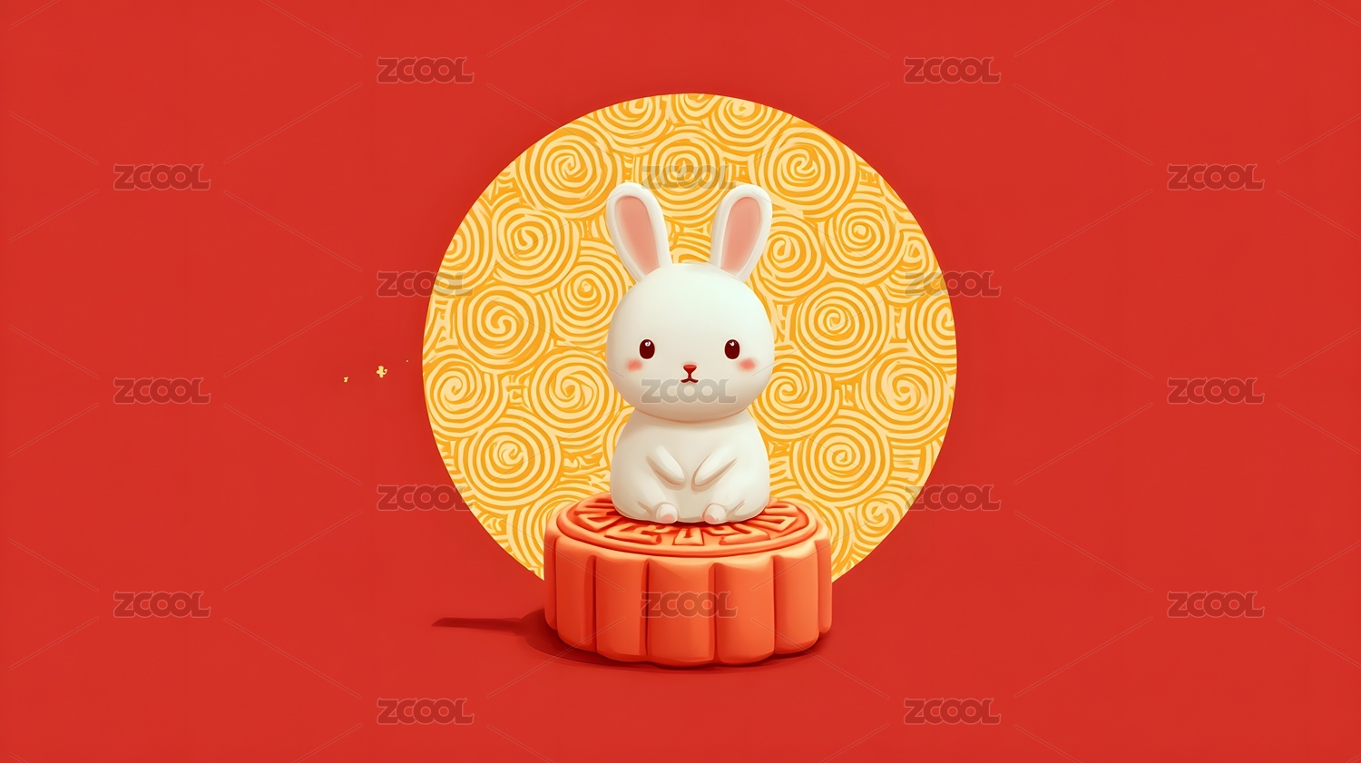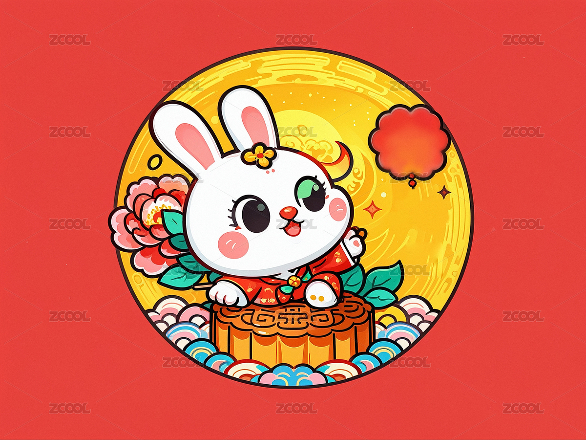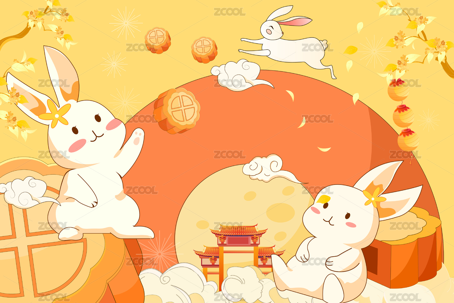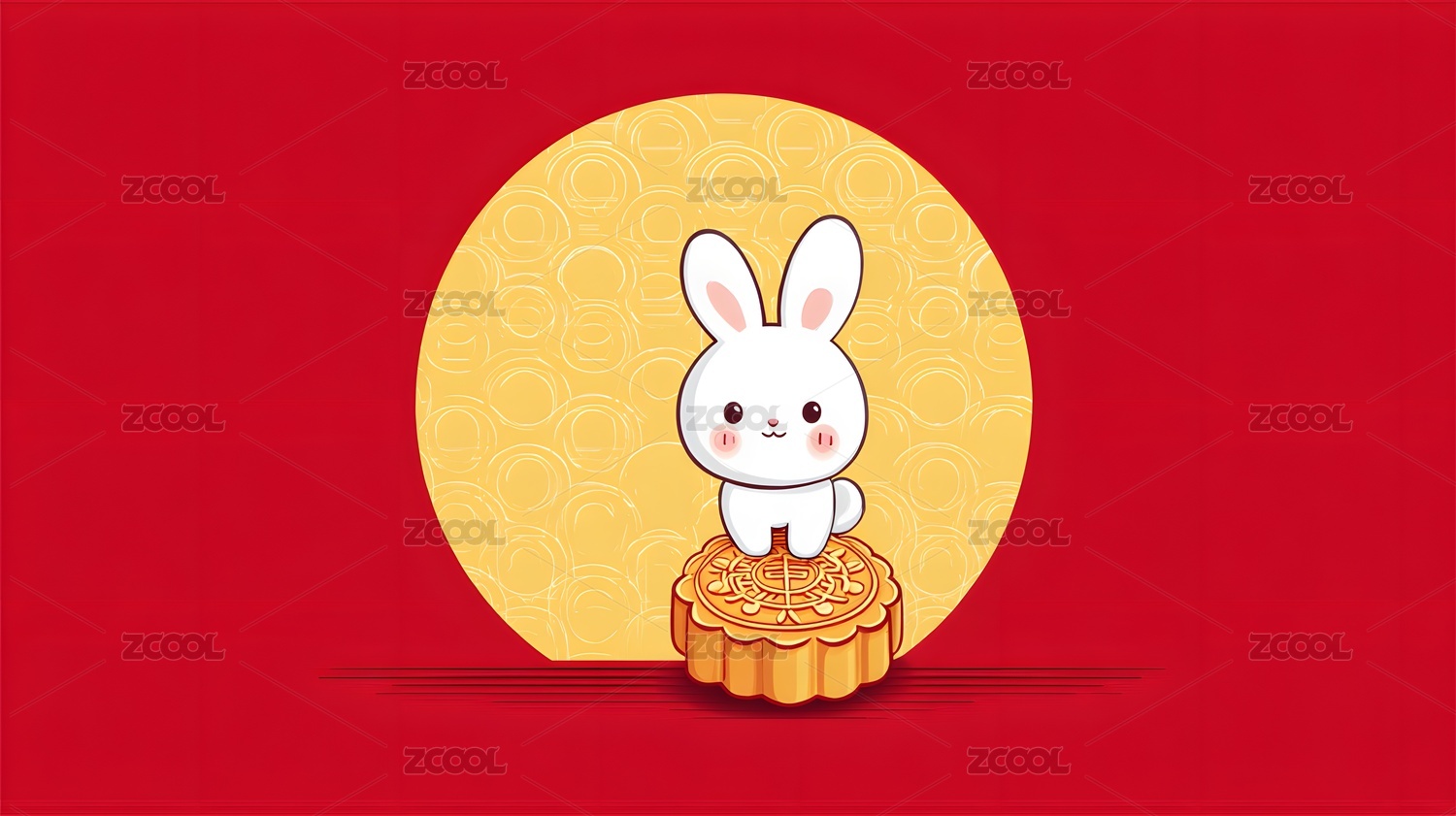 中秋卡通玉兔月饼节日喜庆团圆插画