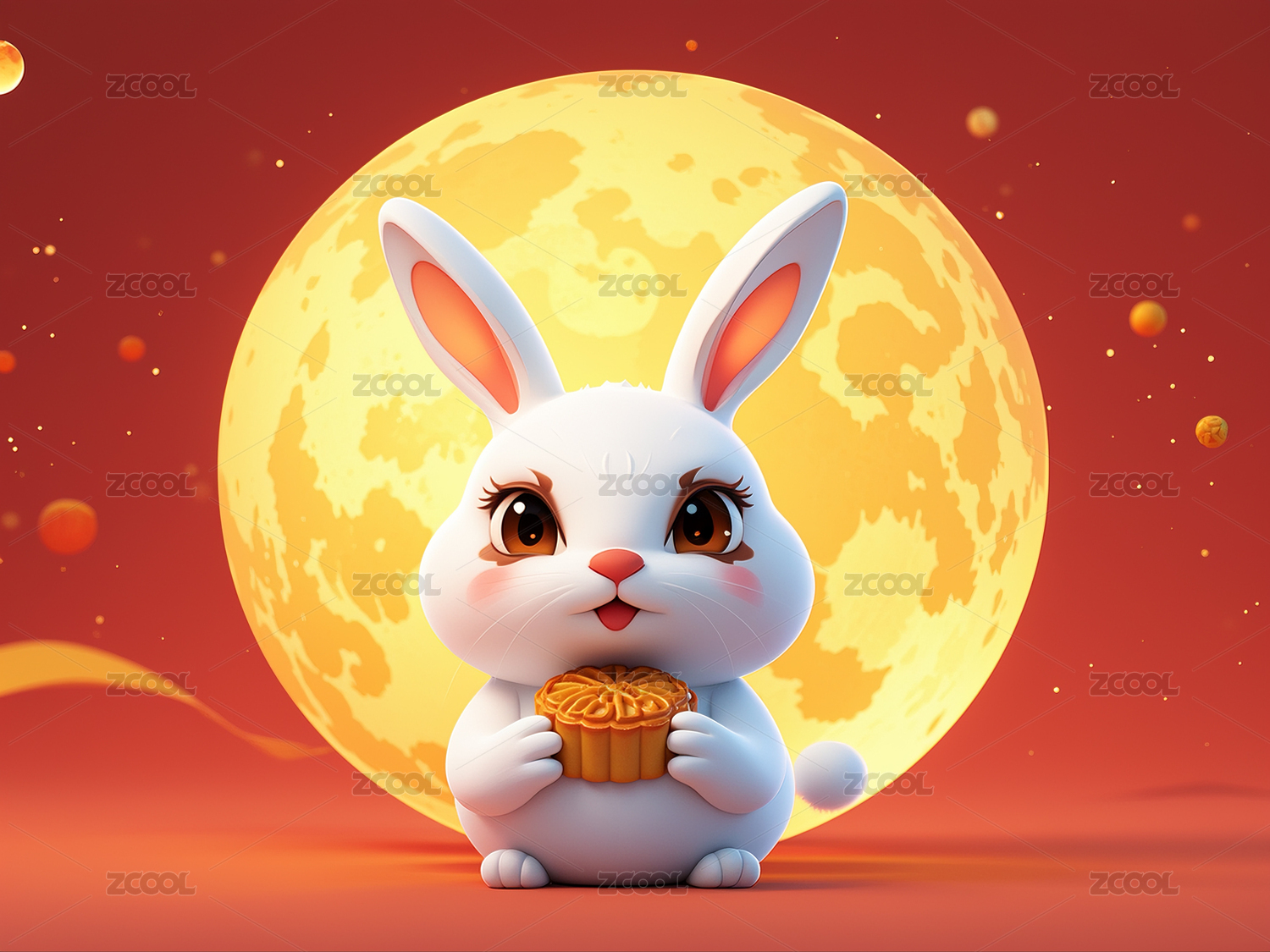 AI绘画,月亮,兔子,月饼,花,AIGC202403,中秋节,玉兔