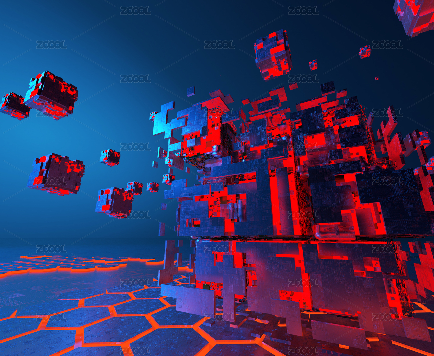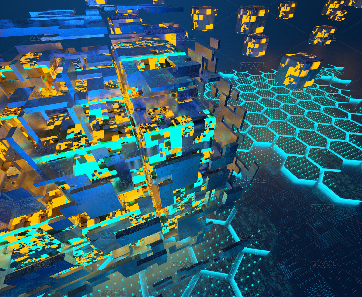 蓝色方块科技感数据场景