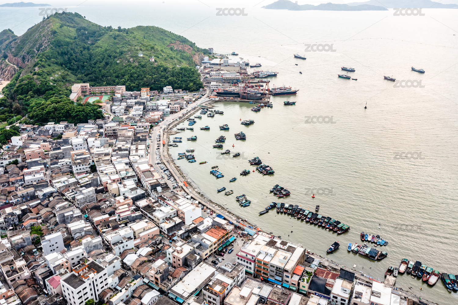 航拍福建平潭岛上的传统石头房屋和海岛风景
