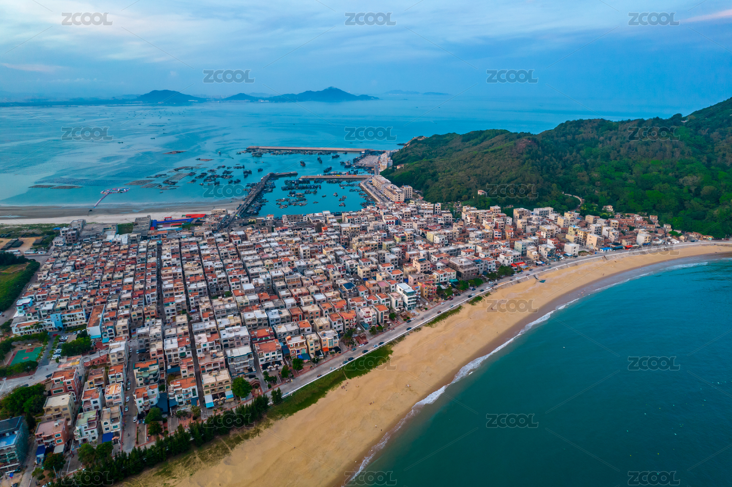 惠州市惠东县港口镇大星山双月湾夕阳航拍