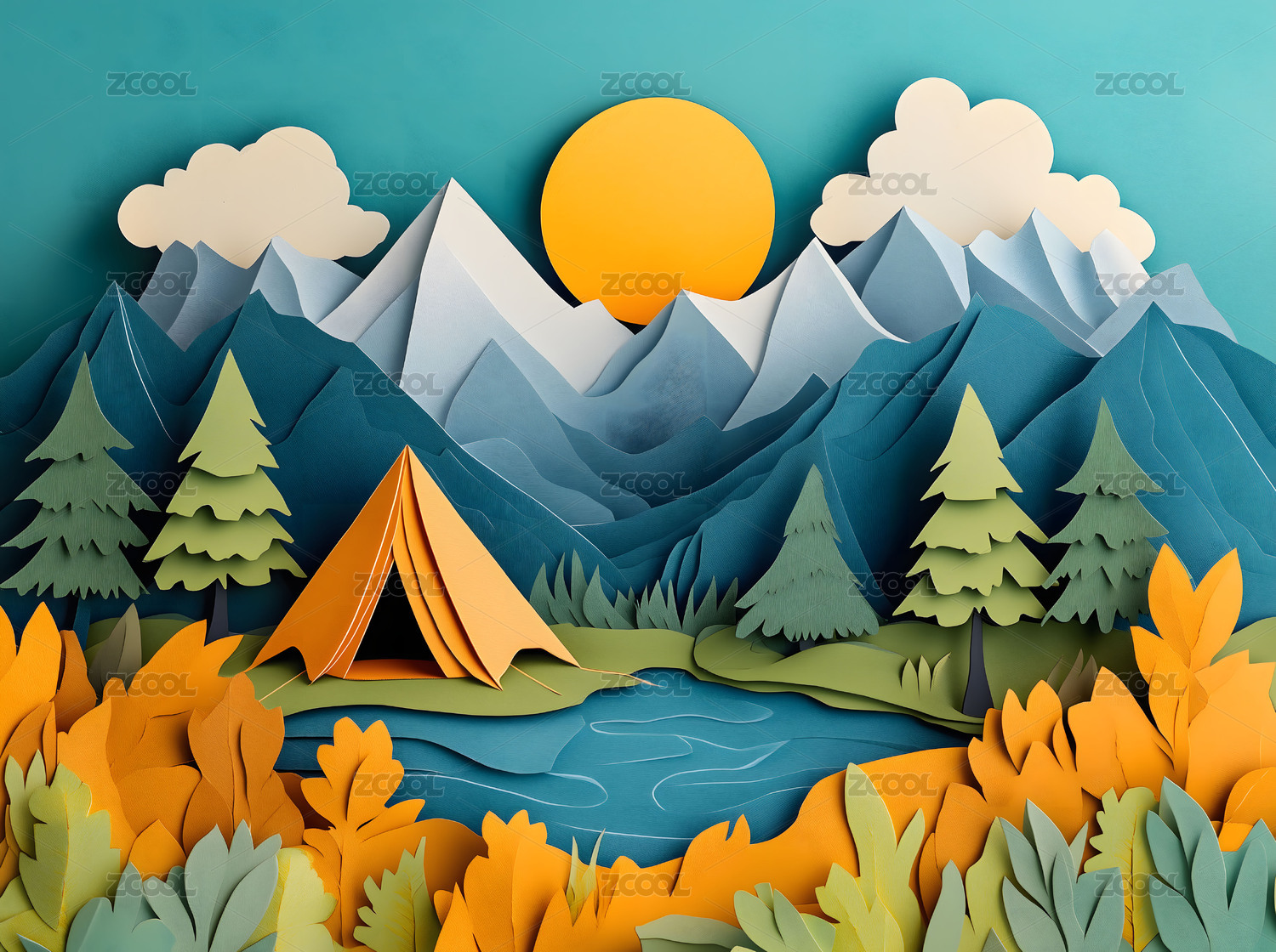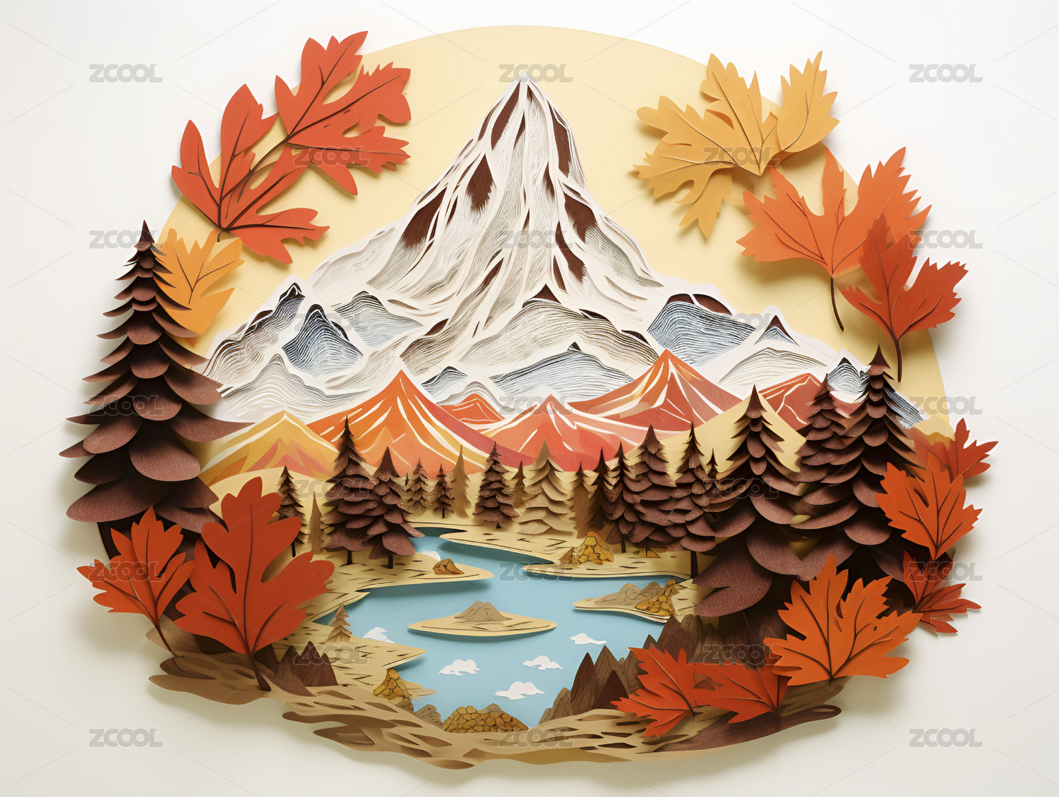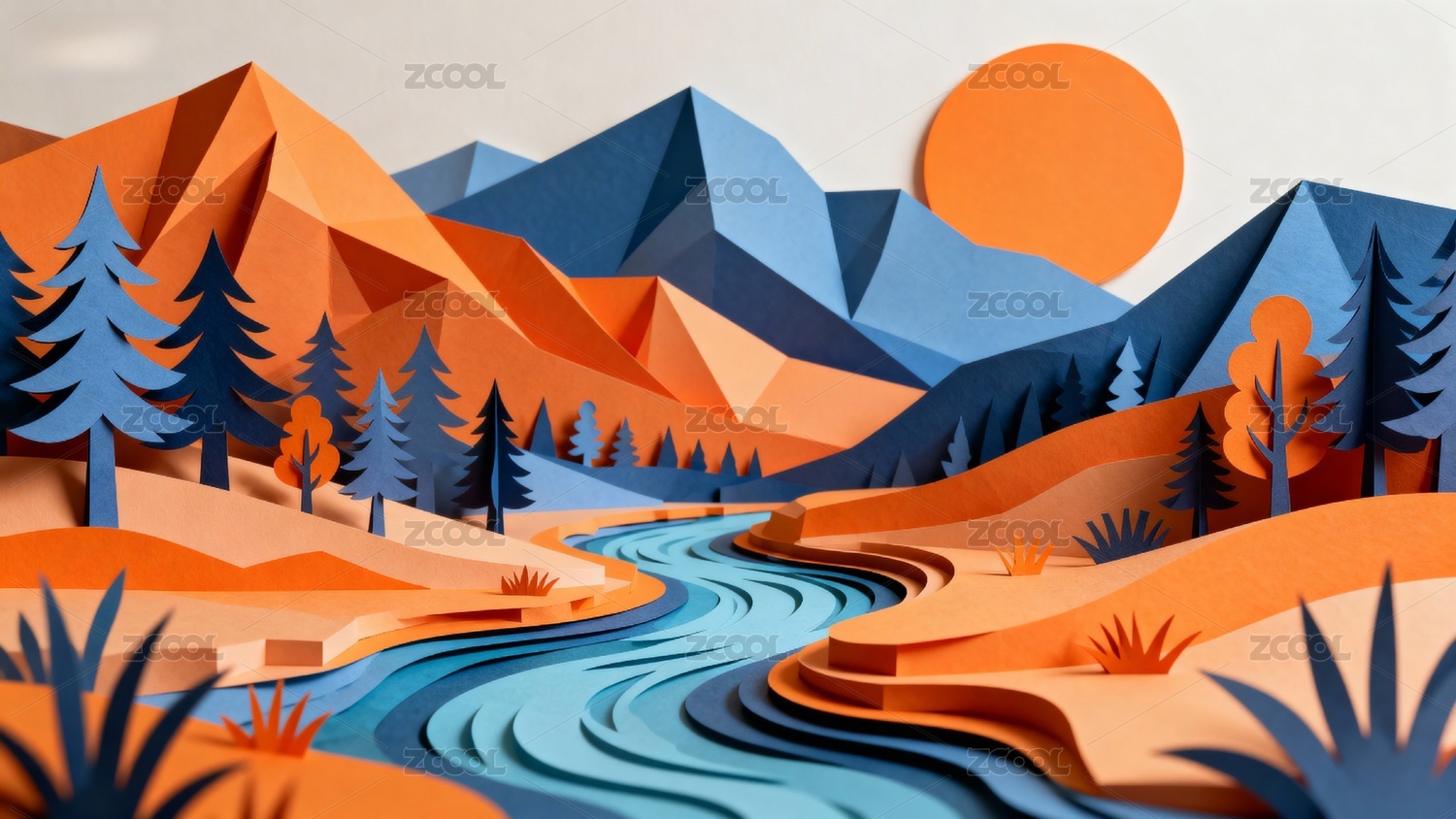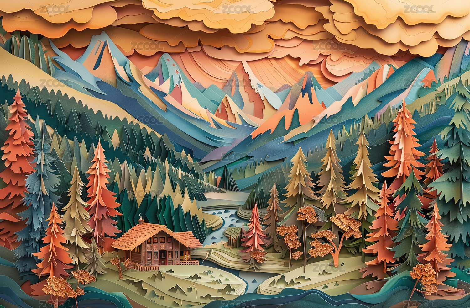 冬季,山谷,河流,雪景,树木,彩色,抽象,艺术,绘画,山脉