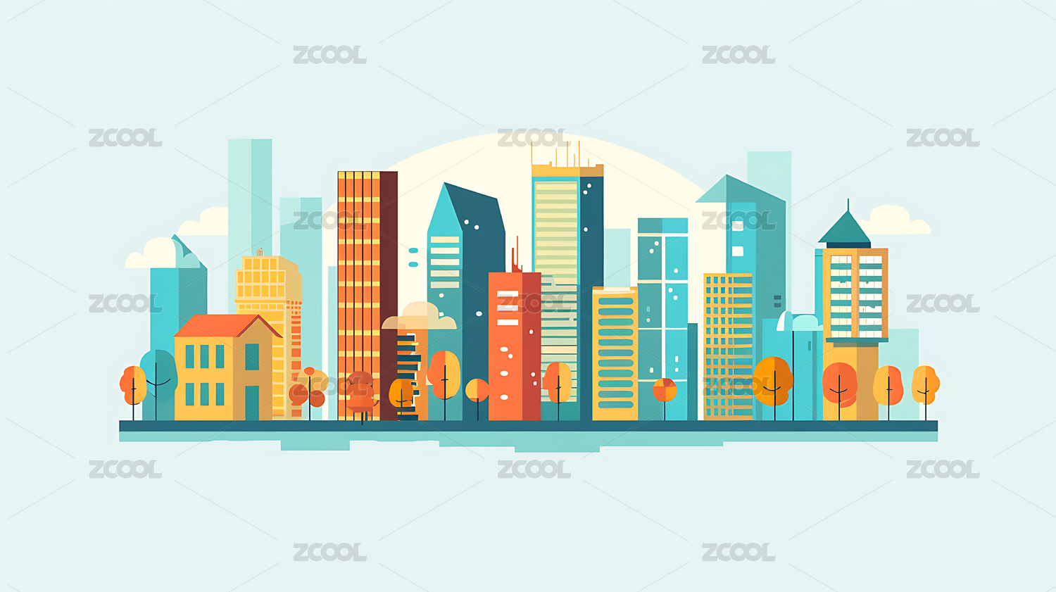 城市建筑群矢量扁平插画