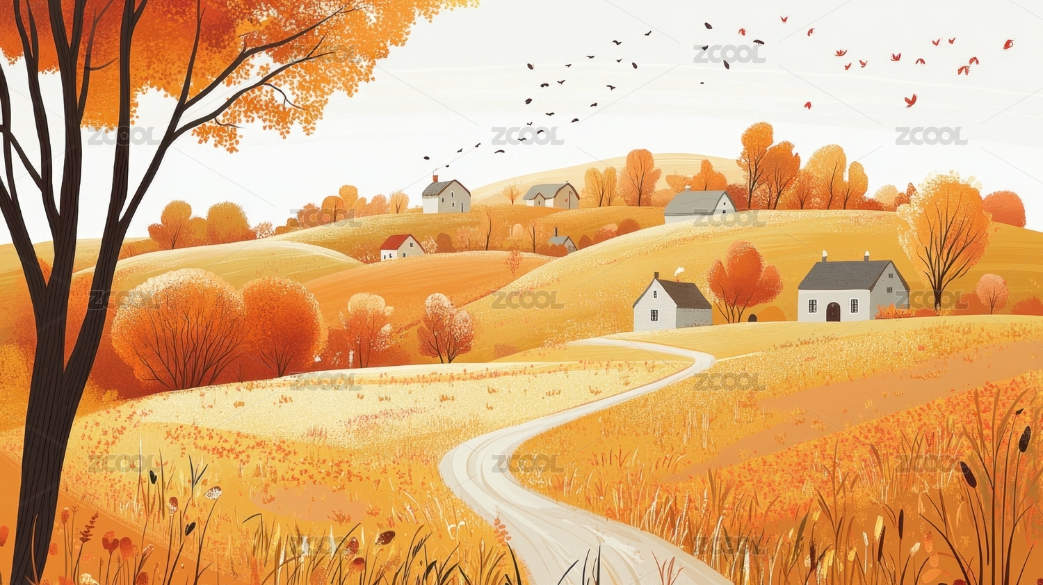 秋天秋季立秋秋分自然户外风景卡通漫画插画