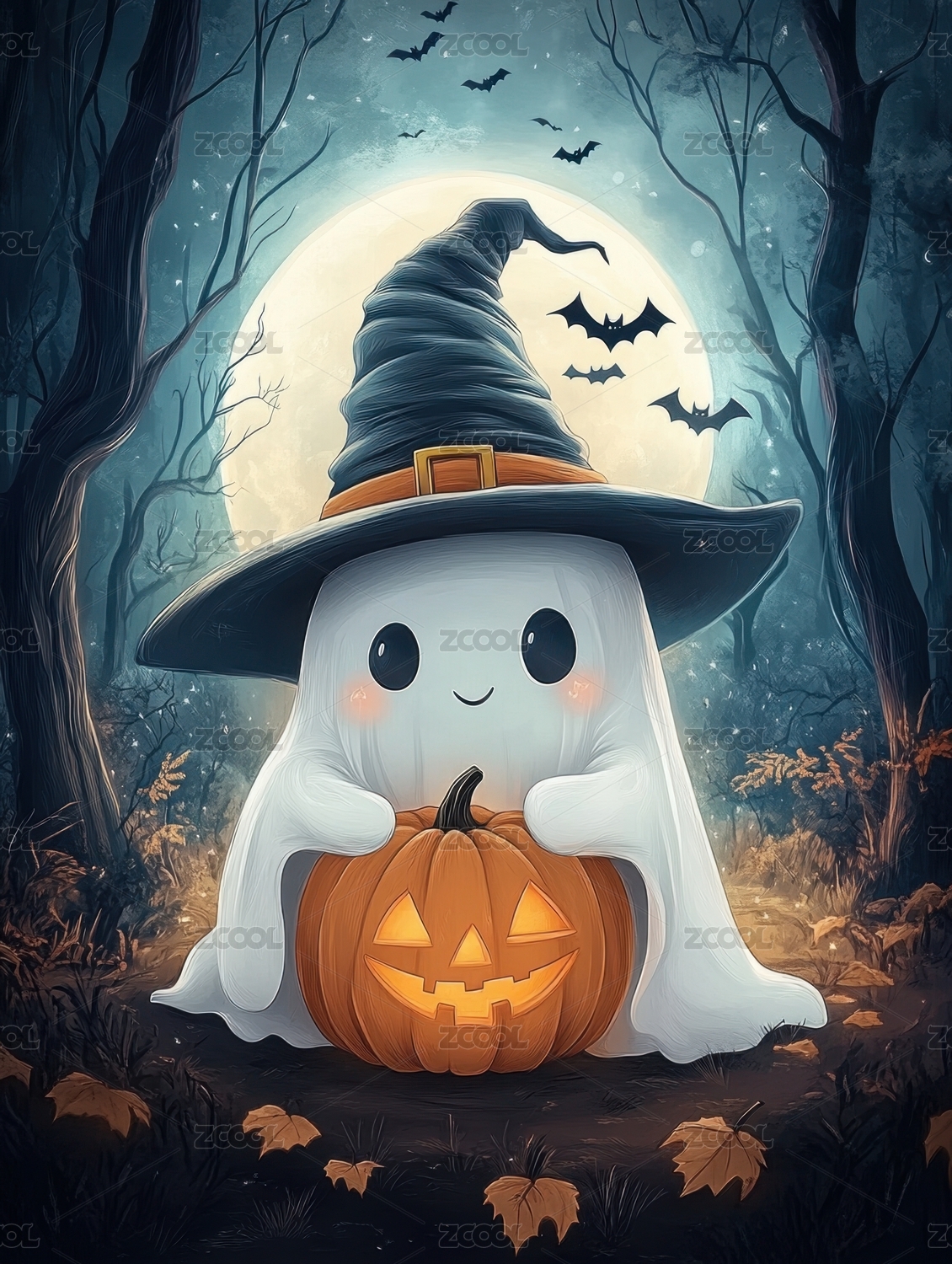 万圣节卡通鬼魂场景