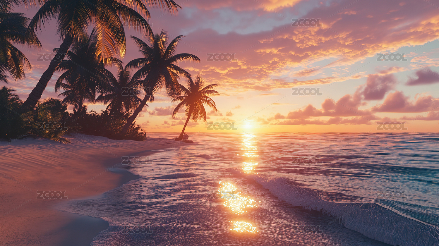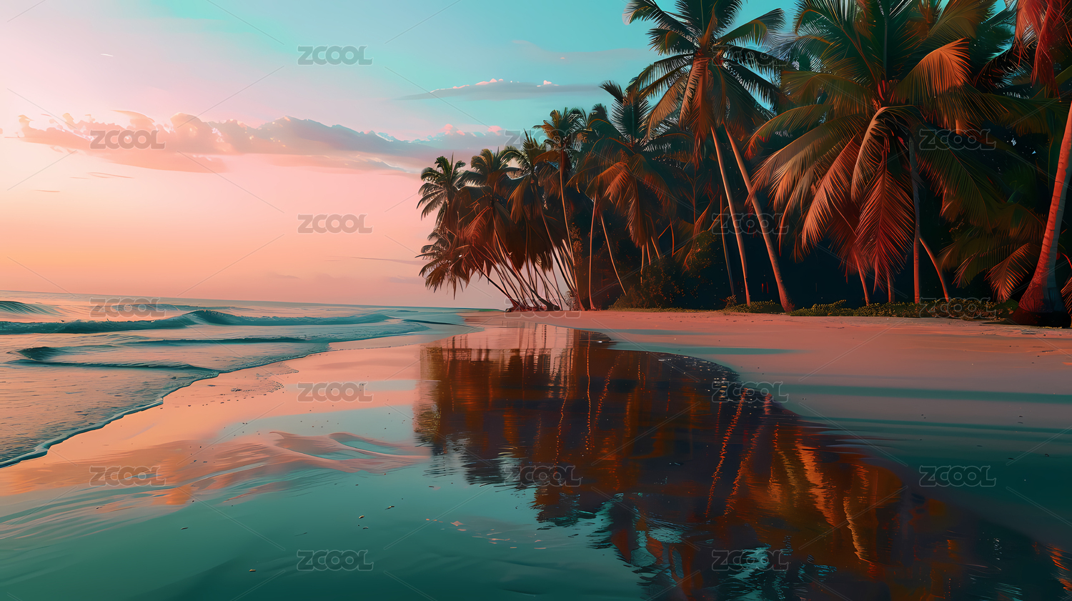 海岛椰影的粉色梦境