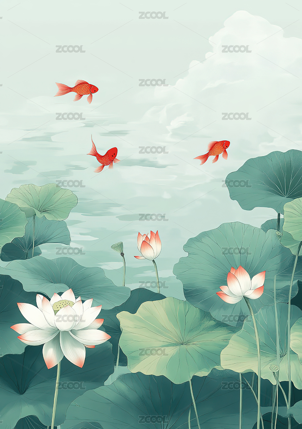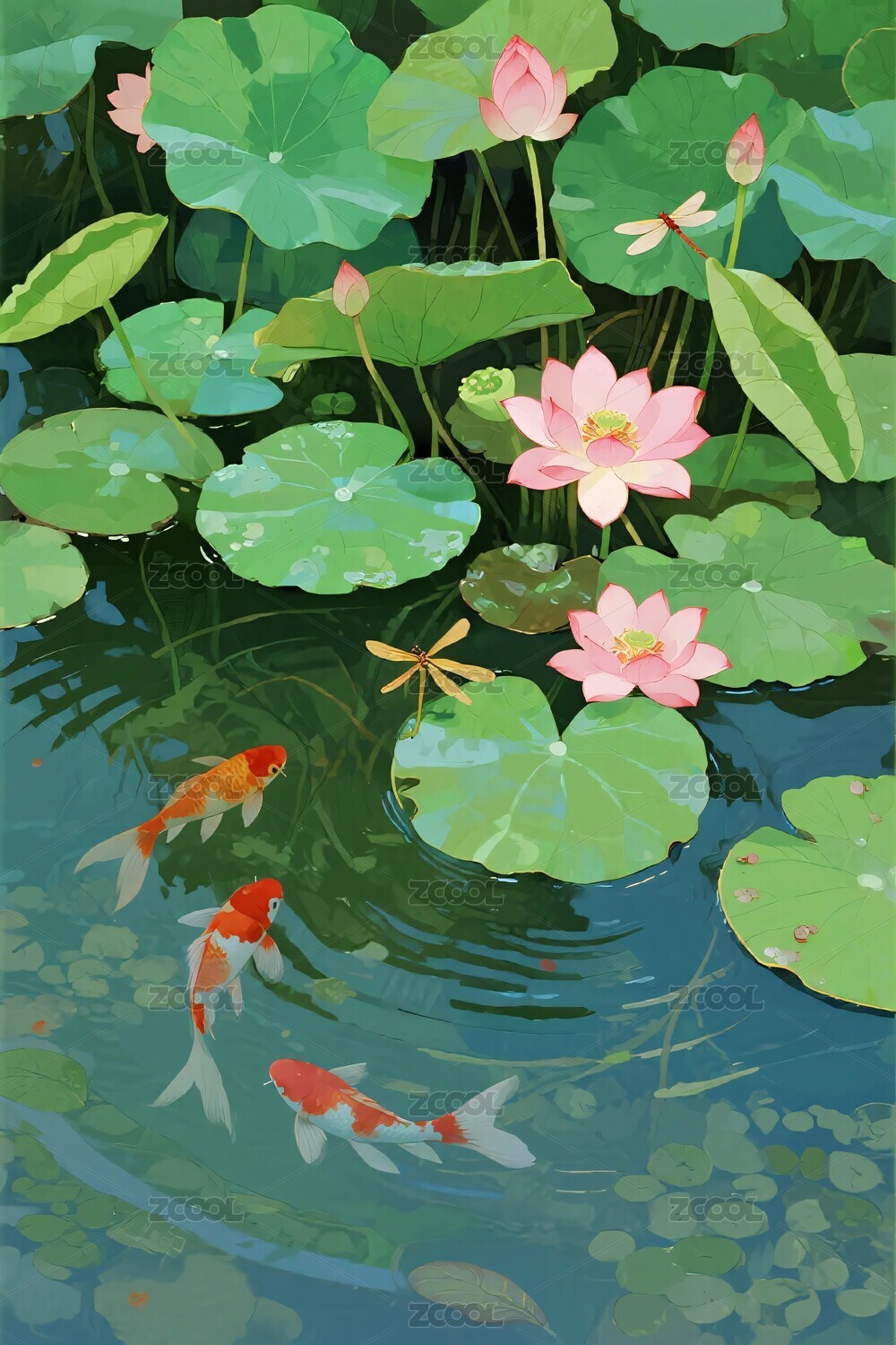 意境,宁静,祥和,艺术,绿色,水彩,绘画,自然,花瓣,美丽