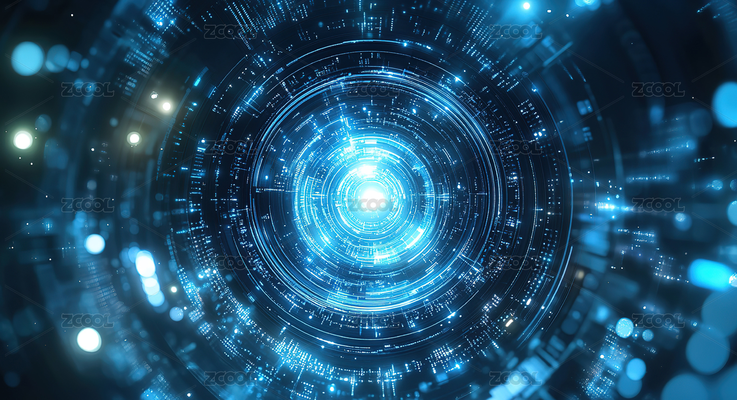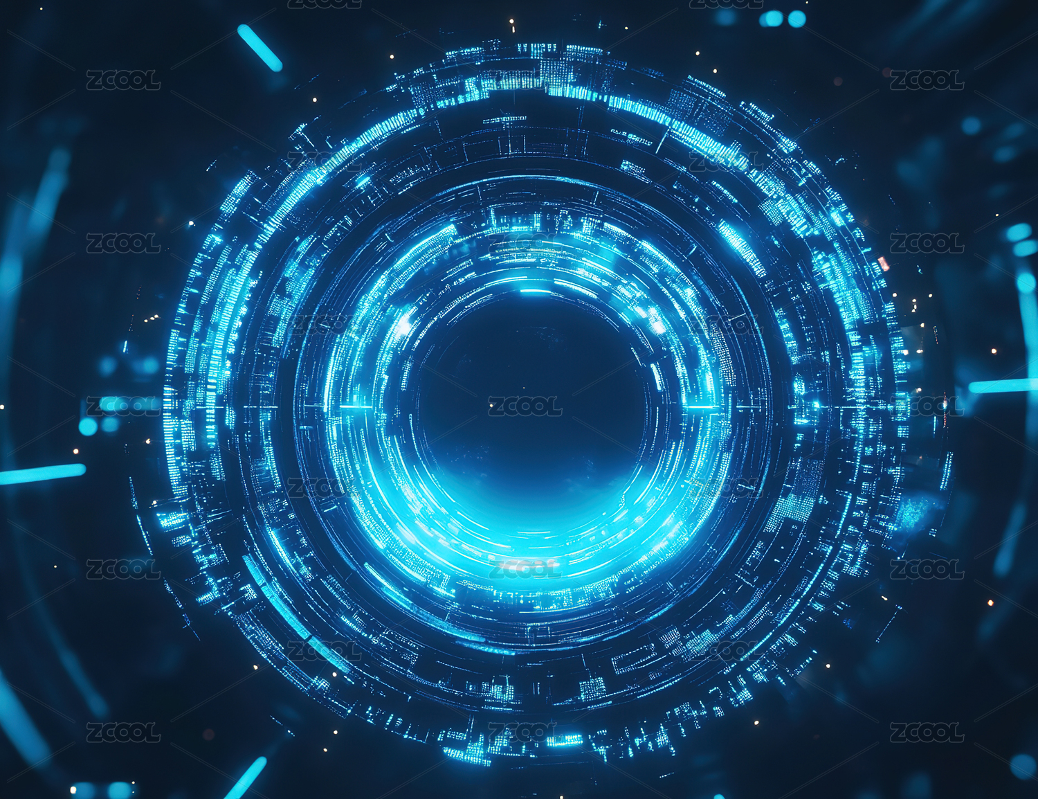 蓝色科技全息抽象霓虹光效粒子光纤圆背景