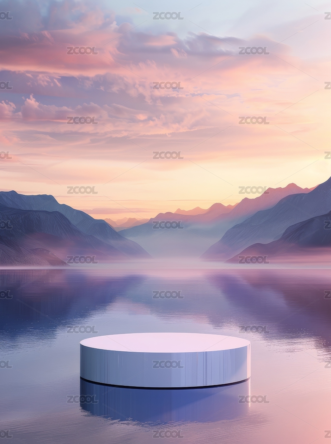 3D紫色水面山峰风景圆形产品展台