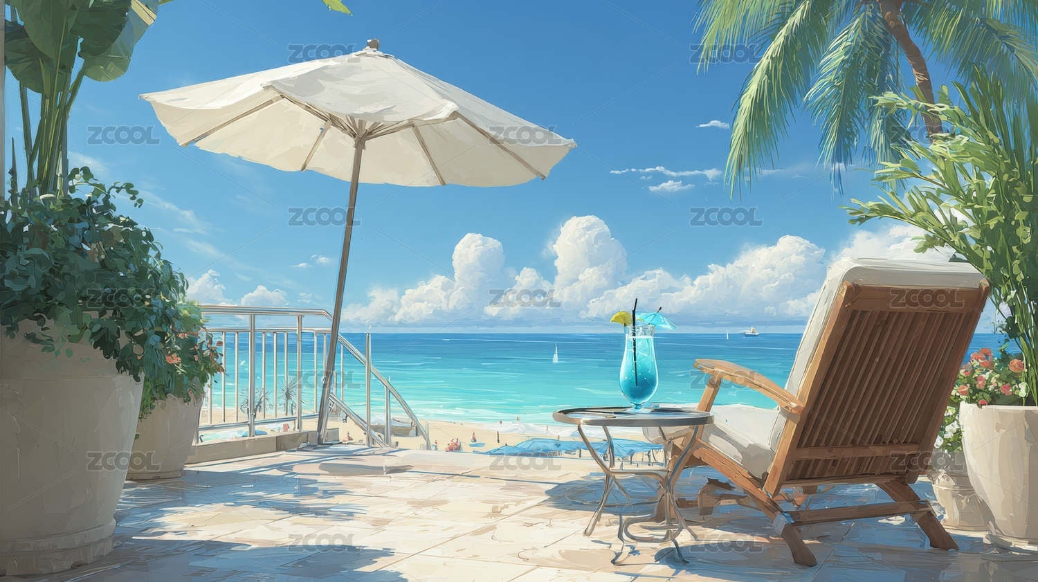 海边露台的悠闲时光