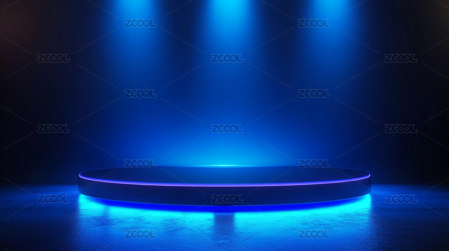 蓝色背景下桌子上的蓝色灯光特写镜头