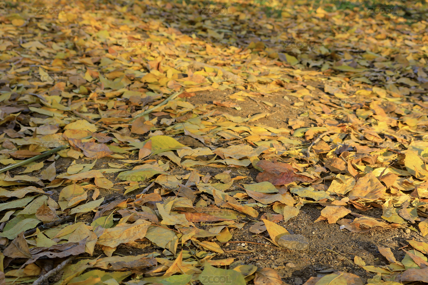 阳光下满屏的秋天金黄色树叶叶子的背景图