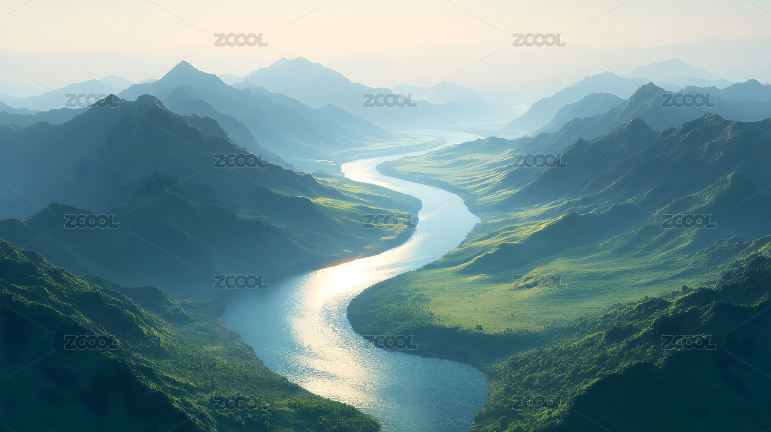 河流,山脉,雪山,日出,晨曦,金色,蜿蜒,景色,自然,风景
