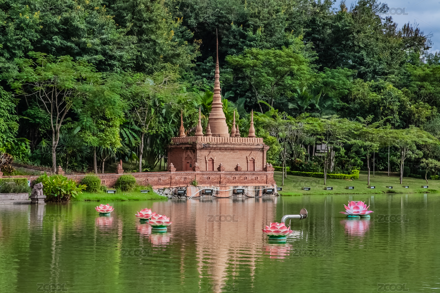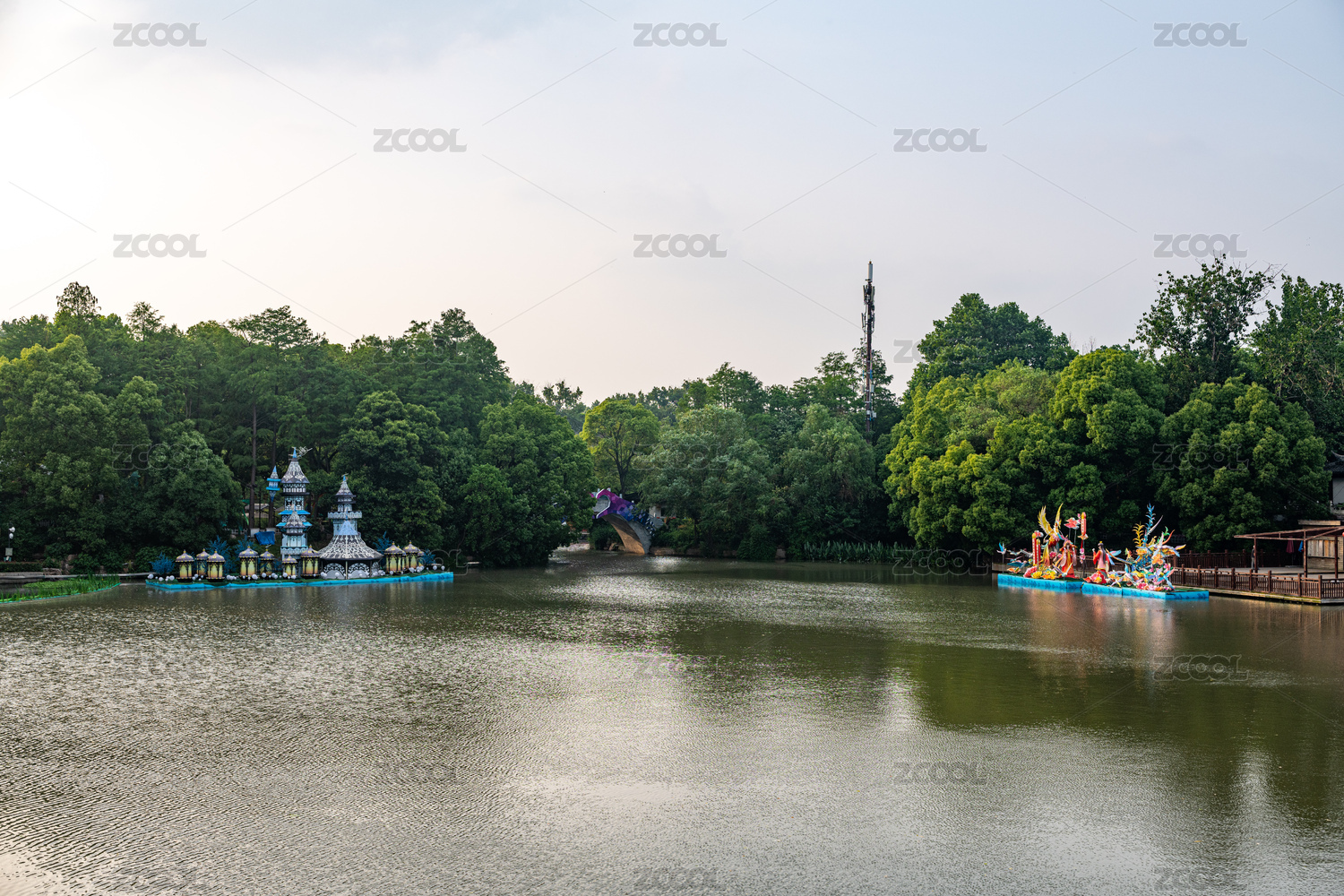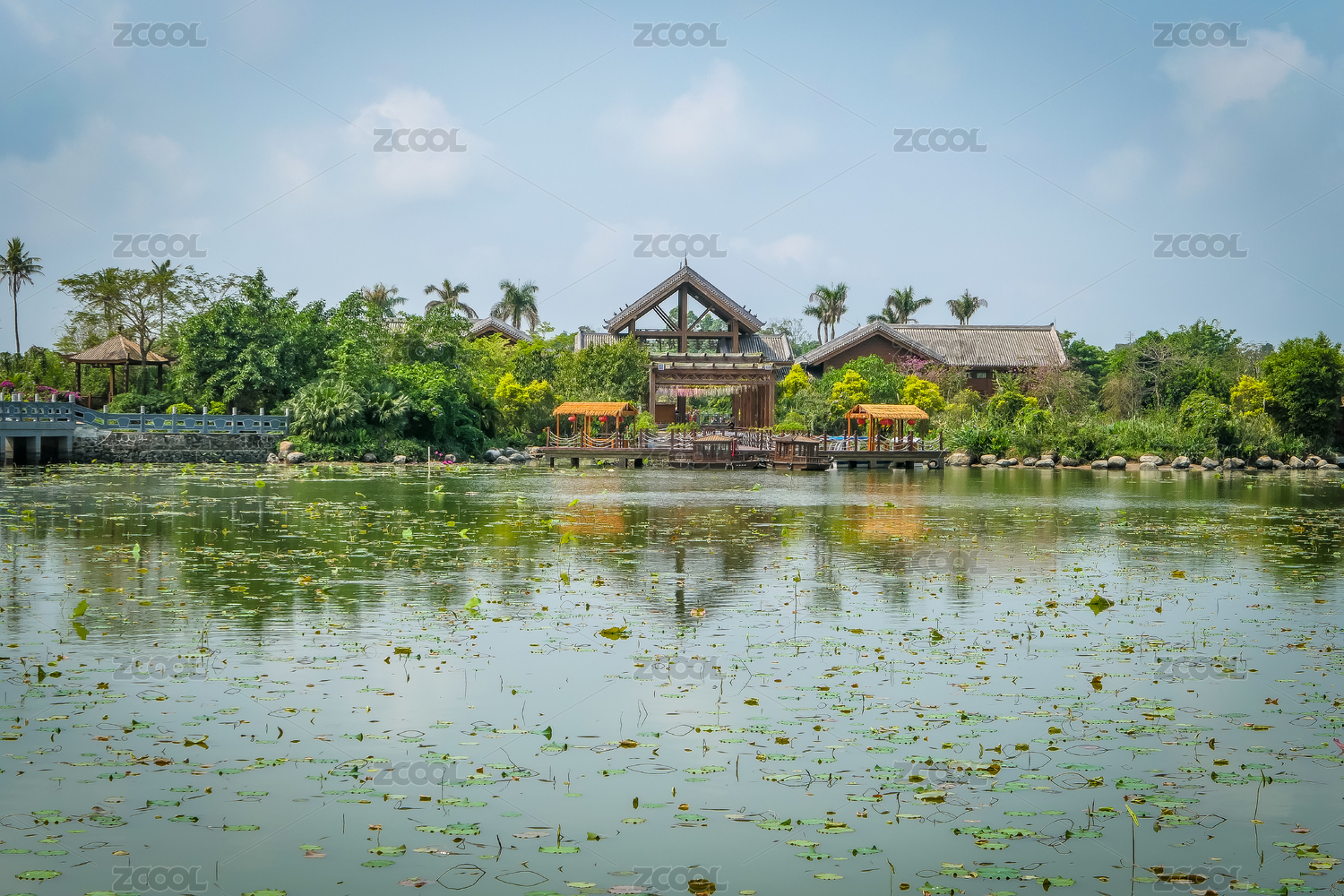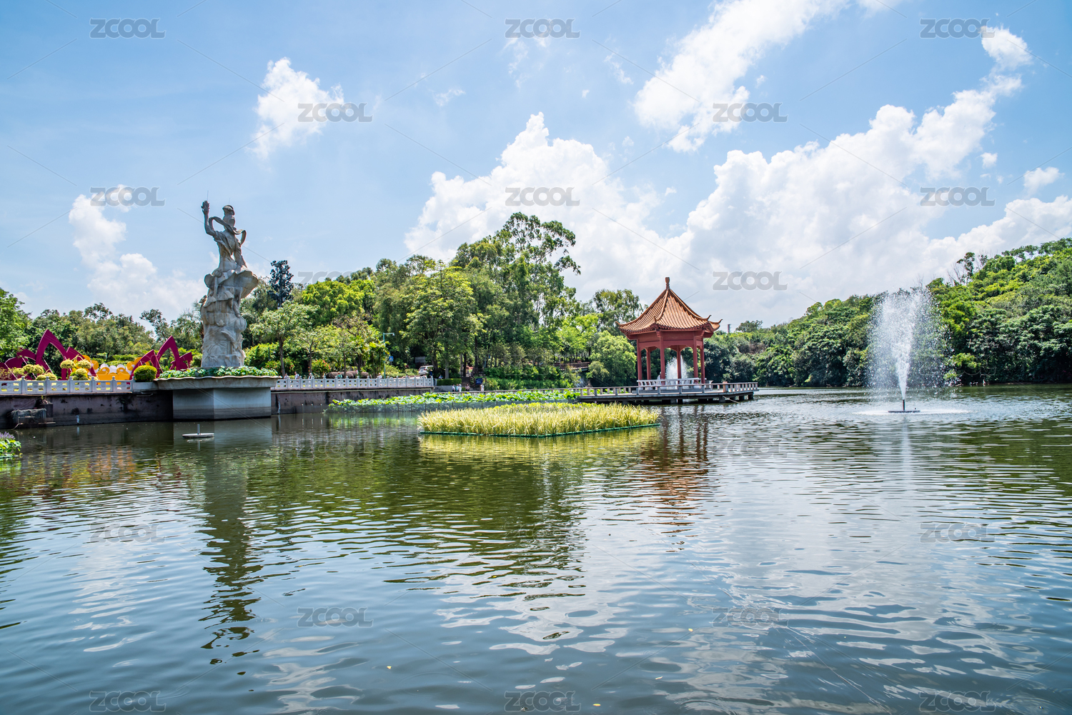 中国广州番禺莲花山公园的莲花湖风光