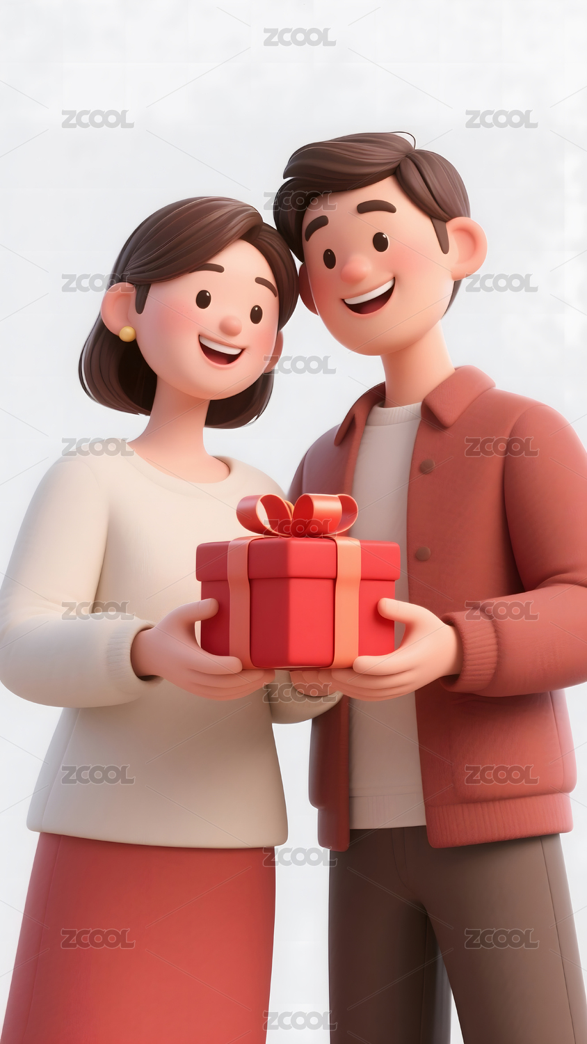 3D可爱粘土质感爱心情侣