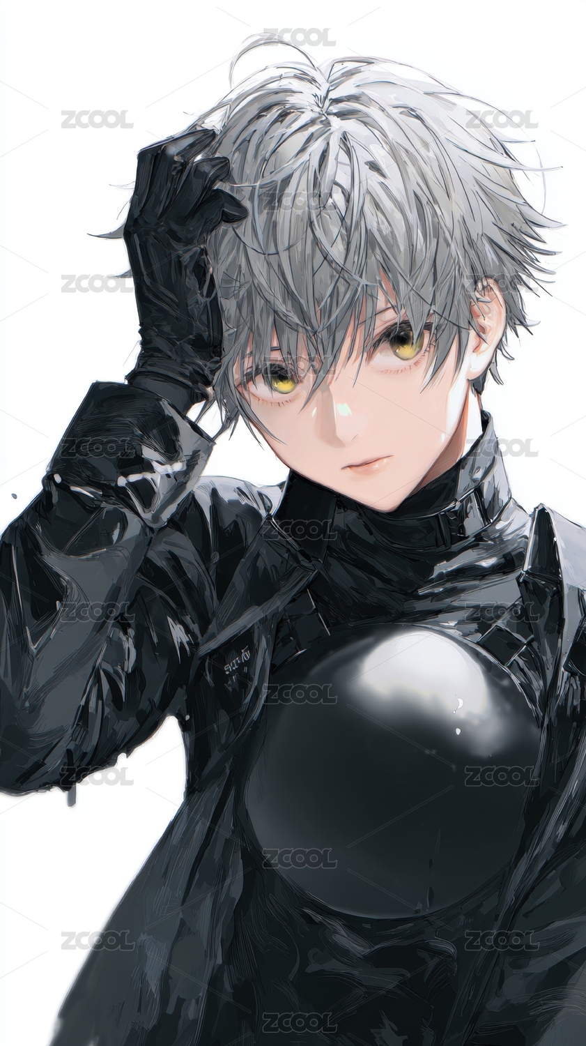 银发青年身穿黑色紧身衣