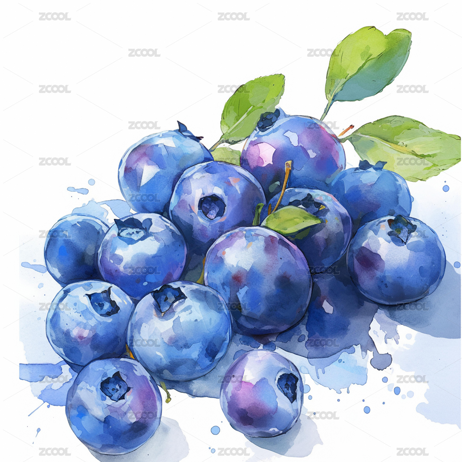 夏日蓝莓水彩