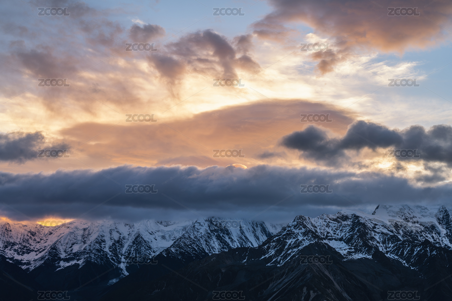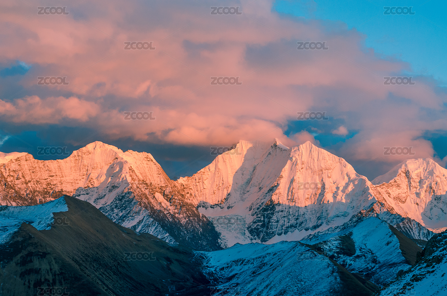 无人,户外,白天,风景,自然,雪山,日出,日照金山,蓝天白云,雪