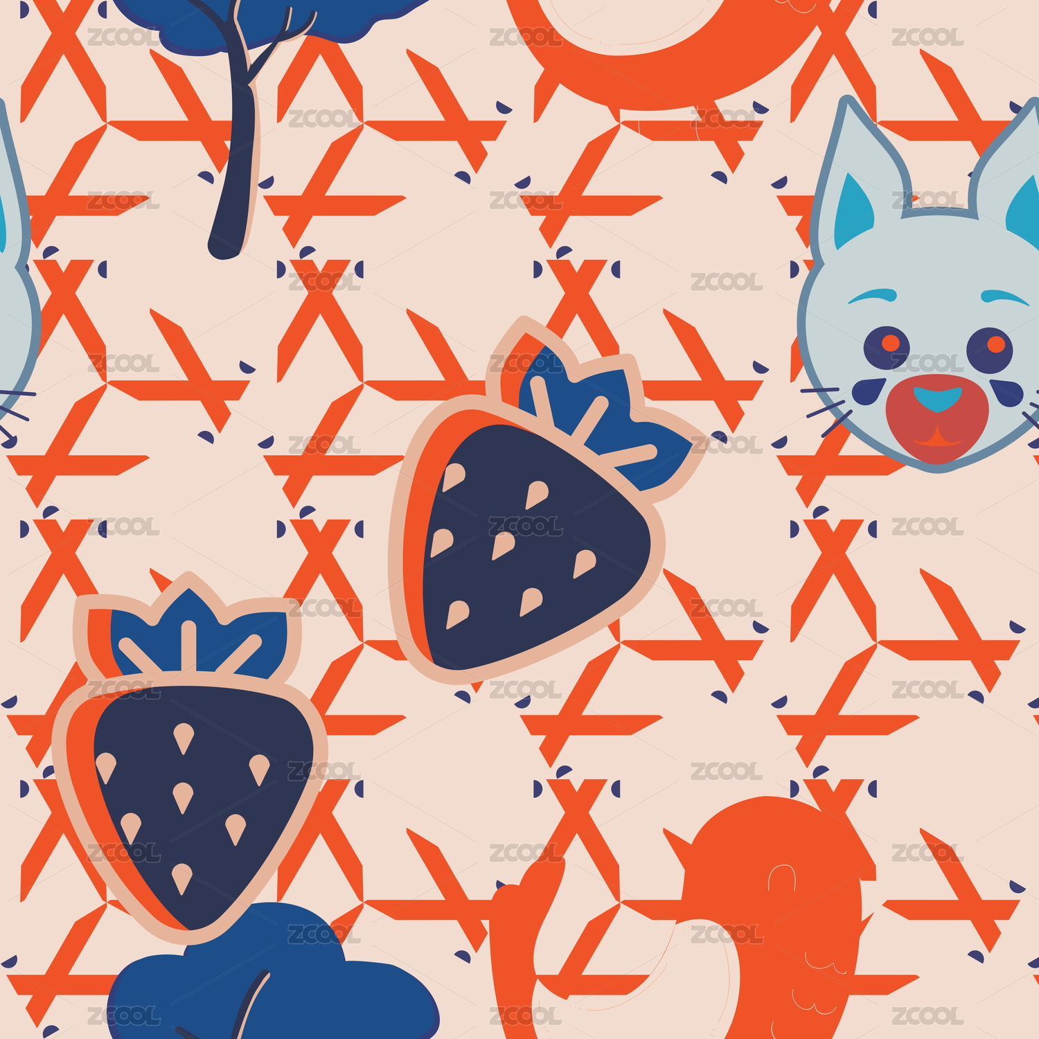 插画,动物,无缝,卡通,可爱,拼接,重复,图形,图案,位图
