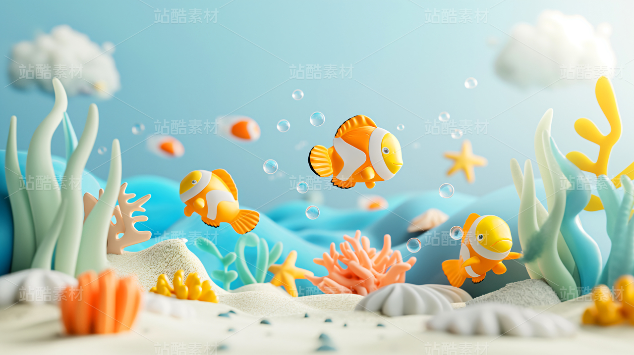 海洋生物多彩风海底场景