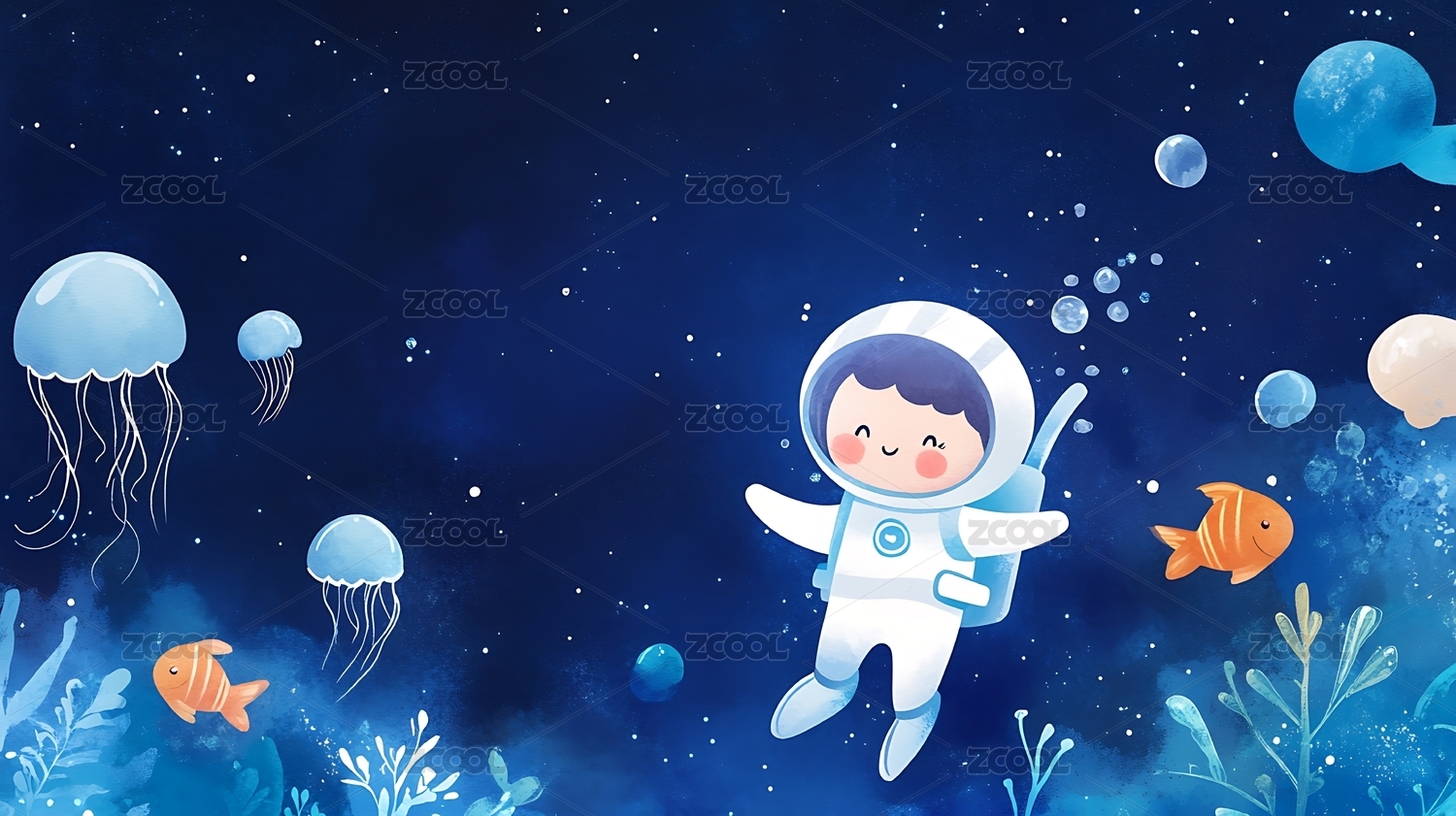 水下卡通潜水童