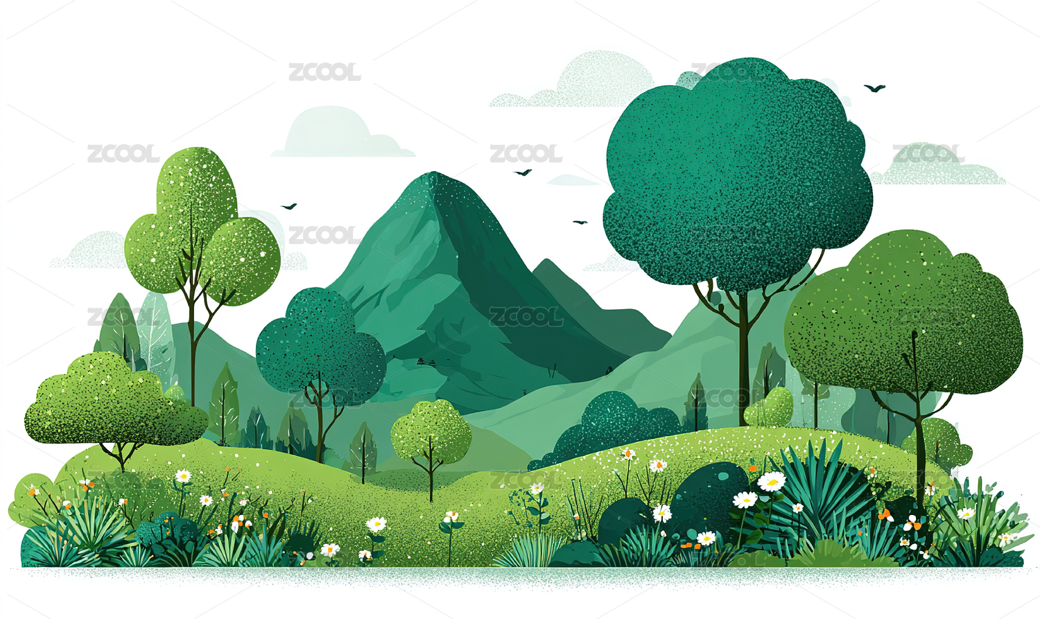 卡通风格的绿色风景插画