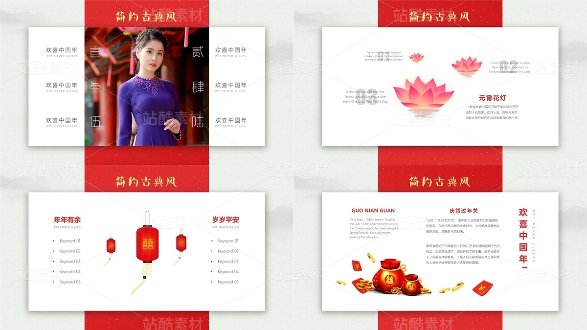 A09-【简约中国风】大气新年红&工作计划汇报展示商务模