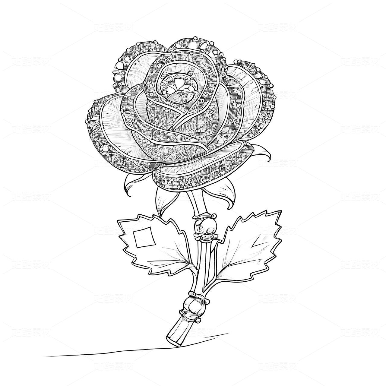 矢量白描玫瑰花