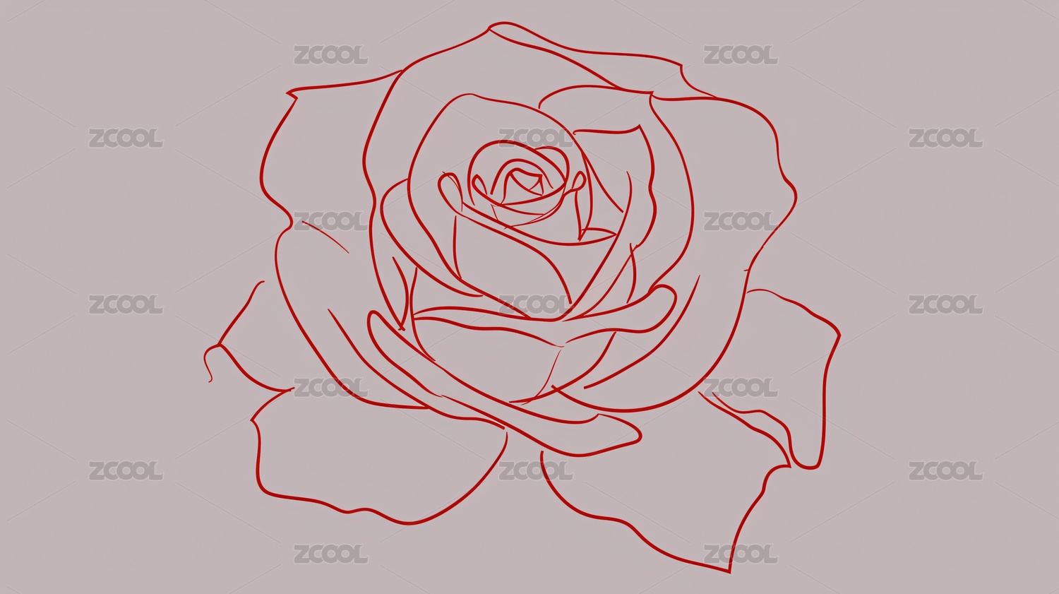 红色线条勾勒的玫瑰花