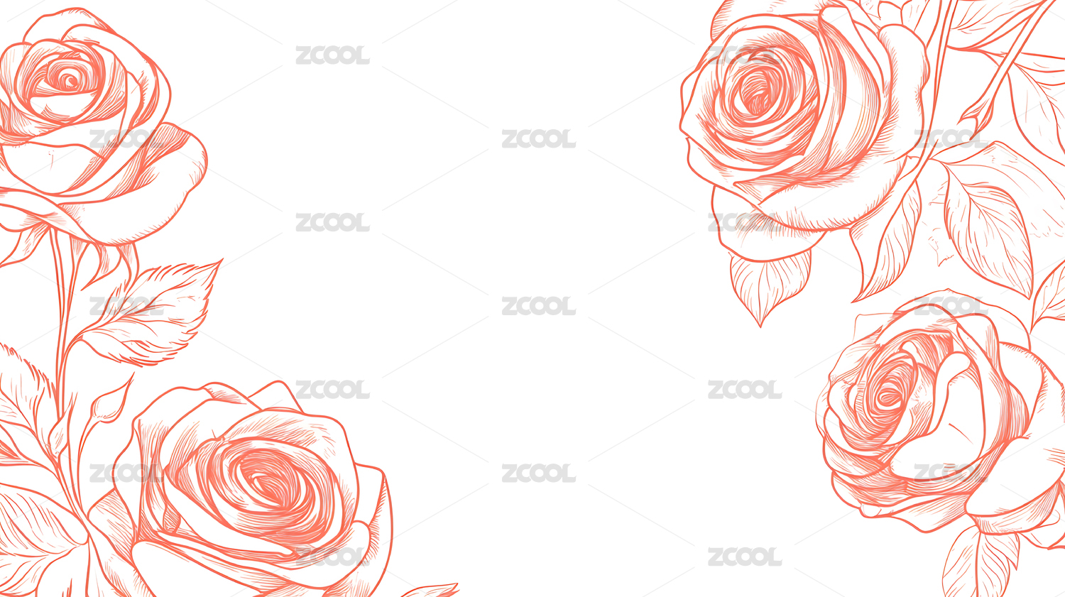 红色玫瑰花卉线条