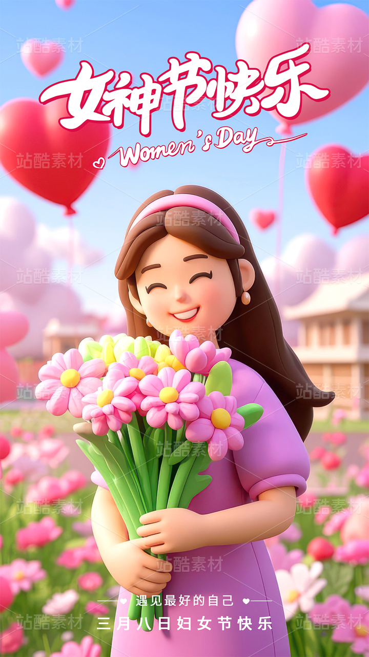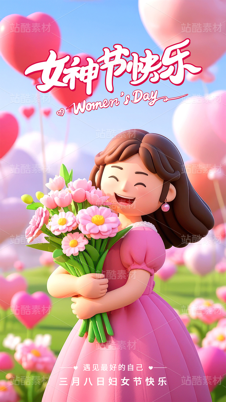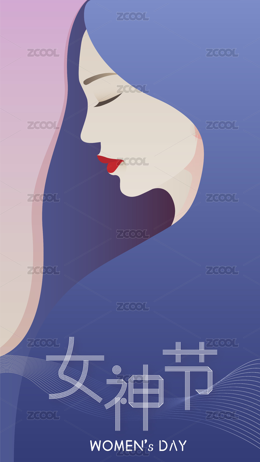 关于女神节、妇女节的插画,美女在花丛中,温柔知性有力量